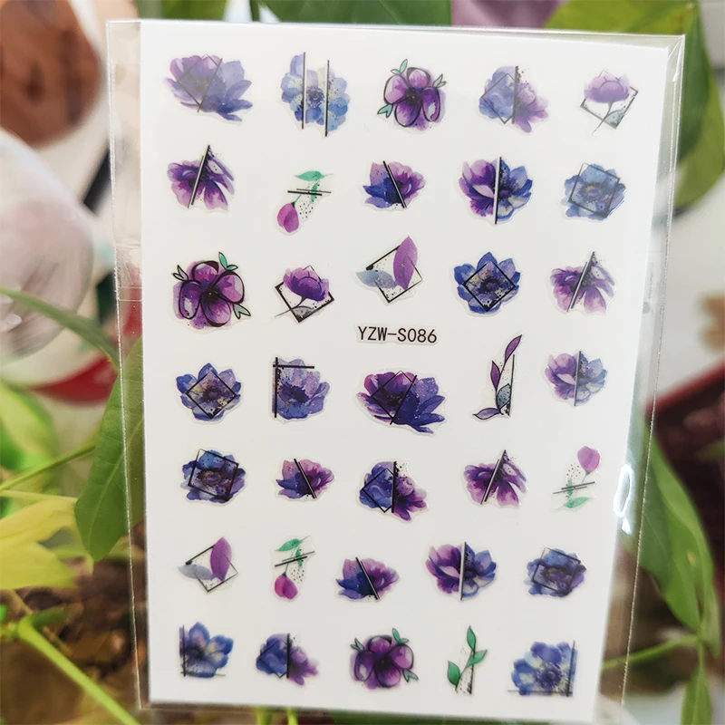Наклейки 3D для ногтей, самоклеящиеся Геометрические линии, украшения для нейл-арта с красным цветком, Стикеры для дизайна ногтей, аксессуары из фольги
