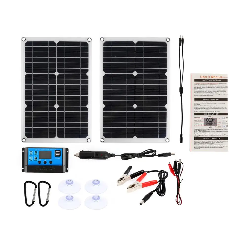 Портативная солнечная панель 180 Вт 12 В с контроллером 20 А, 2 USB-порта, внешний аккумулятор, зарядное устройство, уличный Монокристаллический Модуль для яхты
