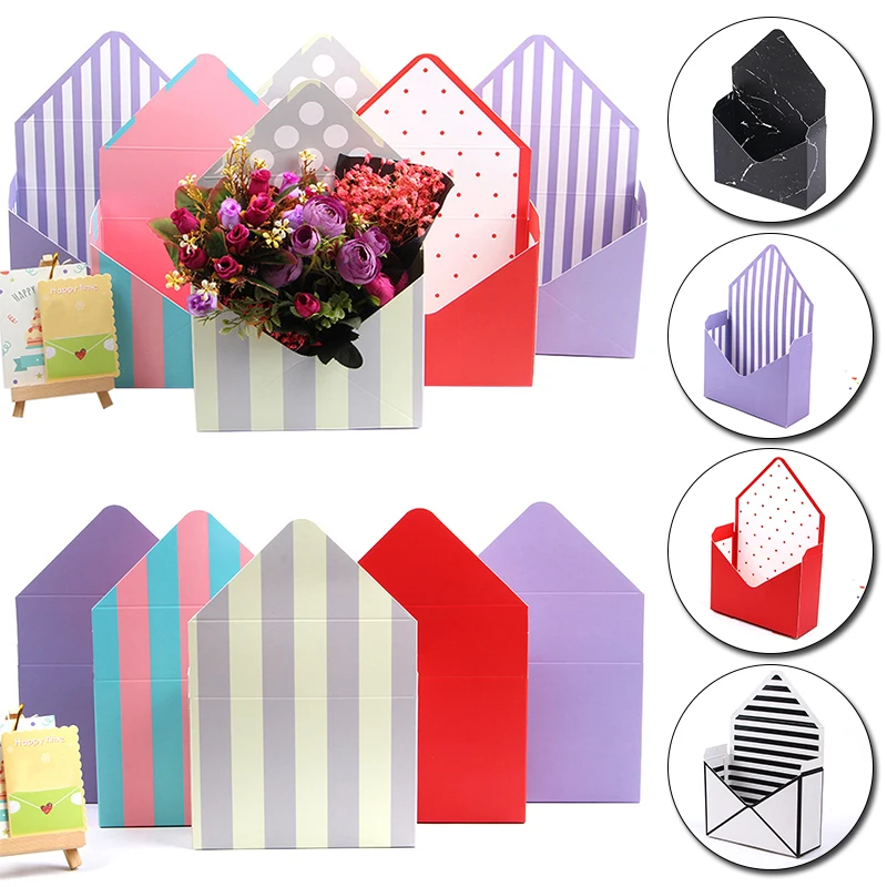 Романтический конверт, полосатый цветочный букет, бумажная упаковочная коробка, держатель, Подарочный конверт для цветов, упаковочная коробка, держатель, поставка