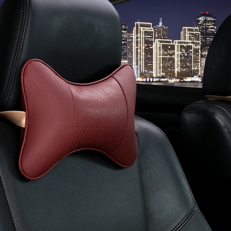 Кожаная подушка для автомобильного сиденья, дышащая подушка для головы и шеи, защитная подушка, подушка для поддержки подголовника, автомобильные аксессуары