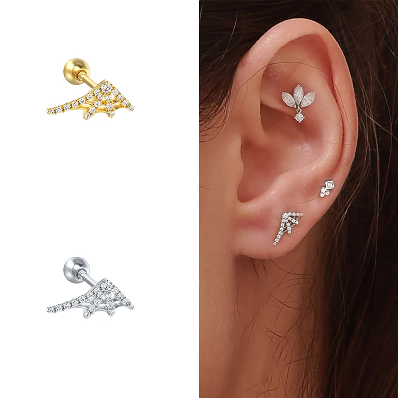 С изображением луны и звезд, крылья CZ Пирсинг для хряща уха спирал...