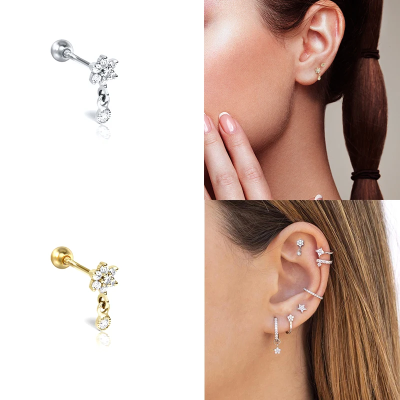 Серьга-гвоздик из нержавеющей стали для пирсинга завитка ушной рако...