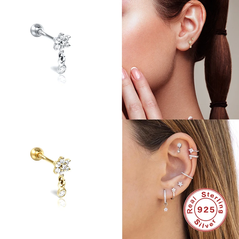 Серьги-гвоздики для пирсинга женские, серебряные украшения со снежи...