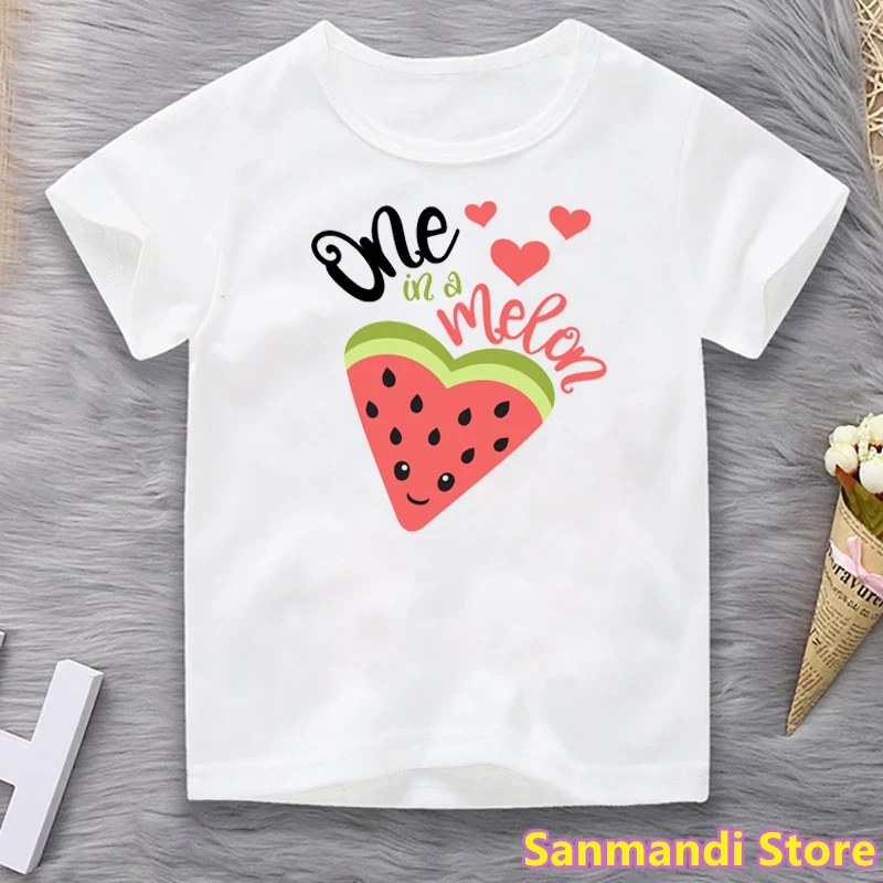 Футболка с графическим принтом один в одной дыни для девочекмальчиков, детская одежда, Милая футболка с надписью Love, Женская милая детская одежда в стиле Харадзюку, топы