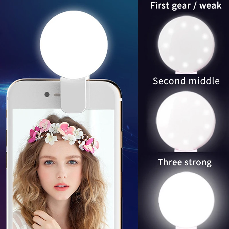 Мини-лампа для селфи, портативное кольцо для вспышки, светящееся кольцо с зажимом для IPhone 8, 7, 6 Plus, Samsung, зарядка через USB