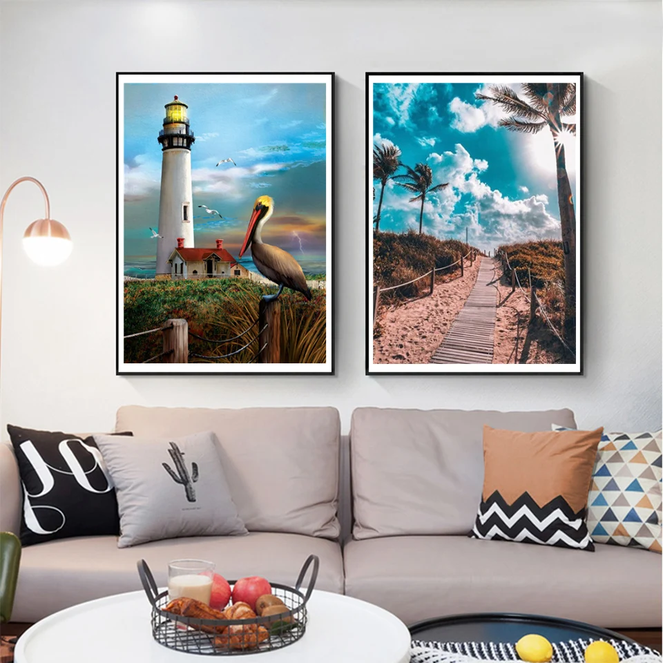 Алмазная живопись 5D сделай сам, пейзаж, маяк, Набор для вышивки крестиком, мозаика, художественная живопись, стразы, вышивка, украшение для дома