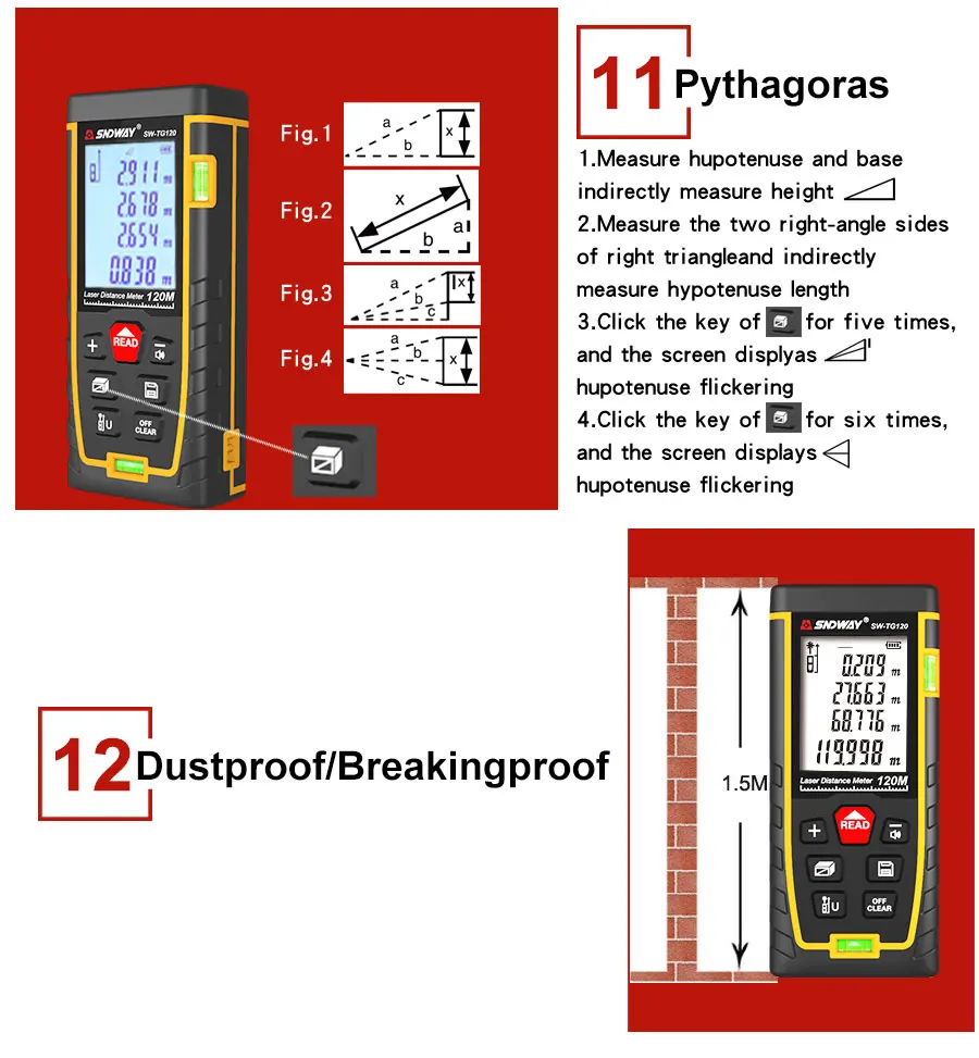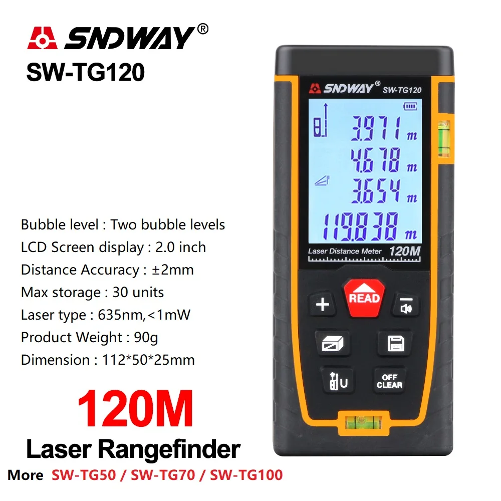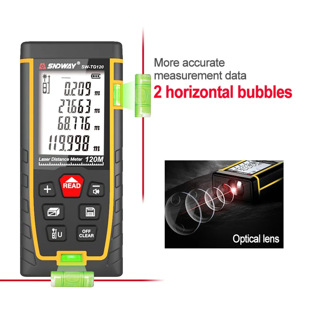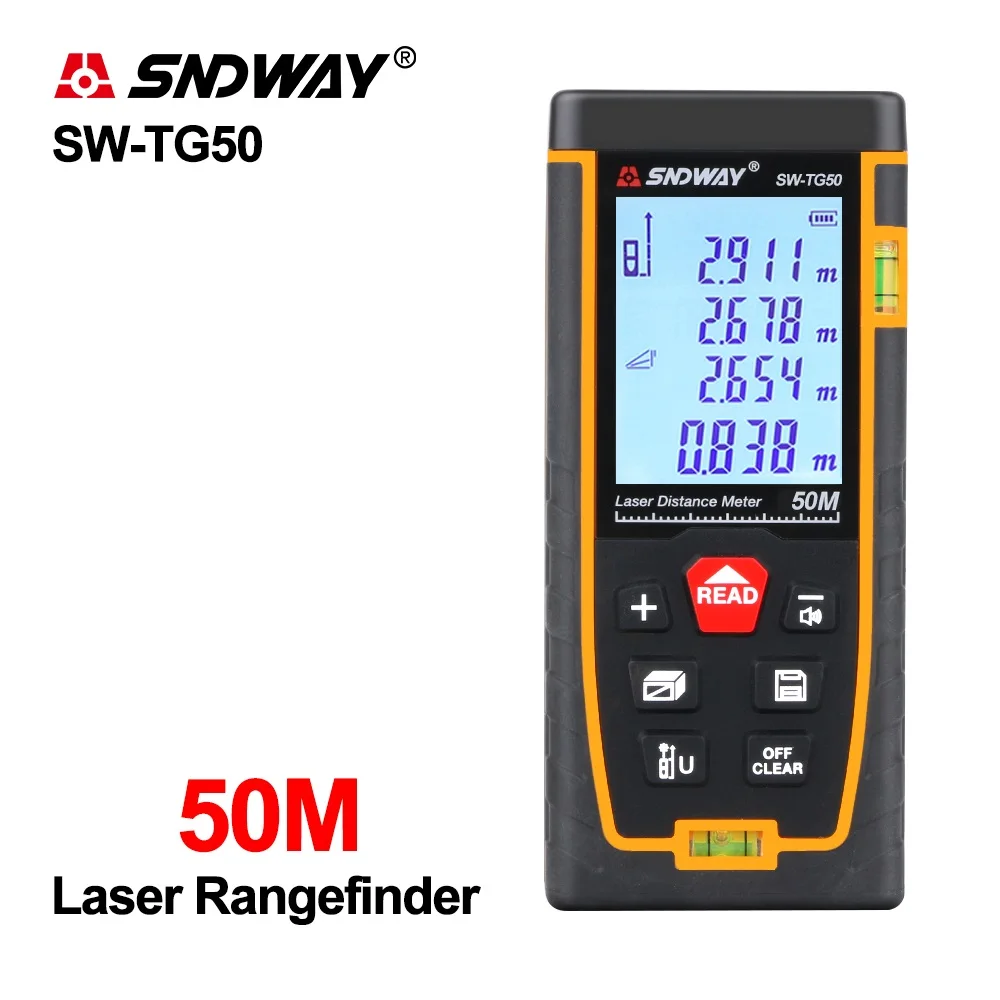 Лазер SNDWAY дальномер SW-TG50 TG120 серии 2 дюймов Экран 50 70 100 120m 2 пузырь Leverl лазерный дальномер