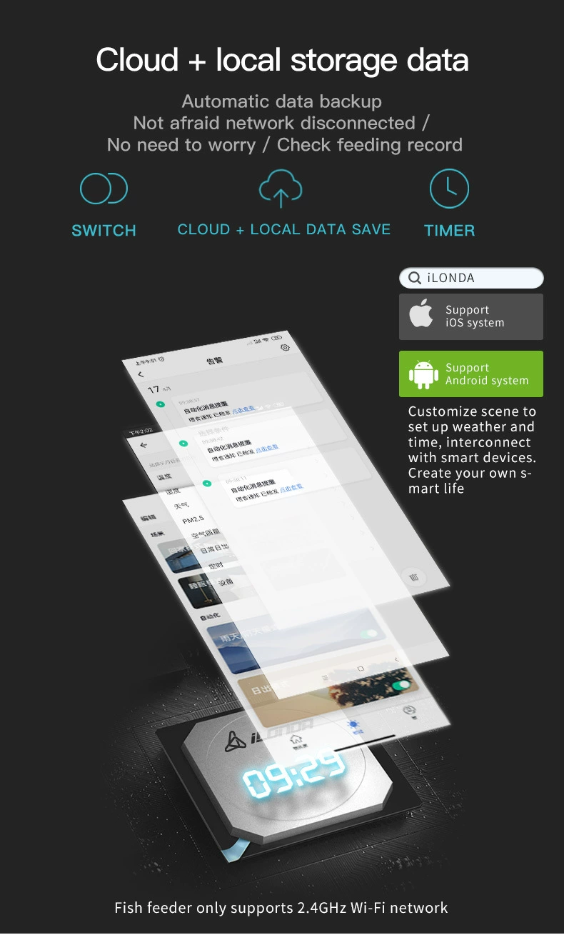 Автоматическая кормушка для аквариума, беспроводной дозатор для аквариума с дистанционным управлением, Wi-Fi