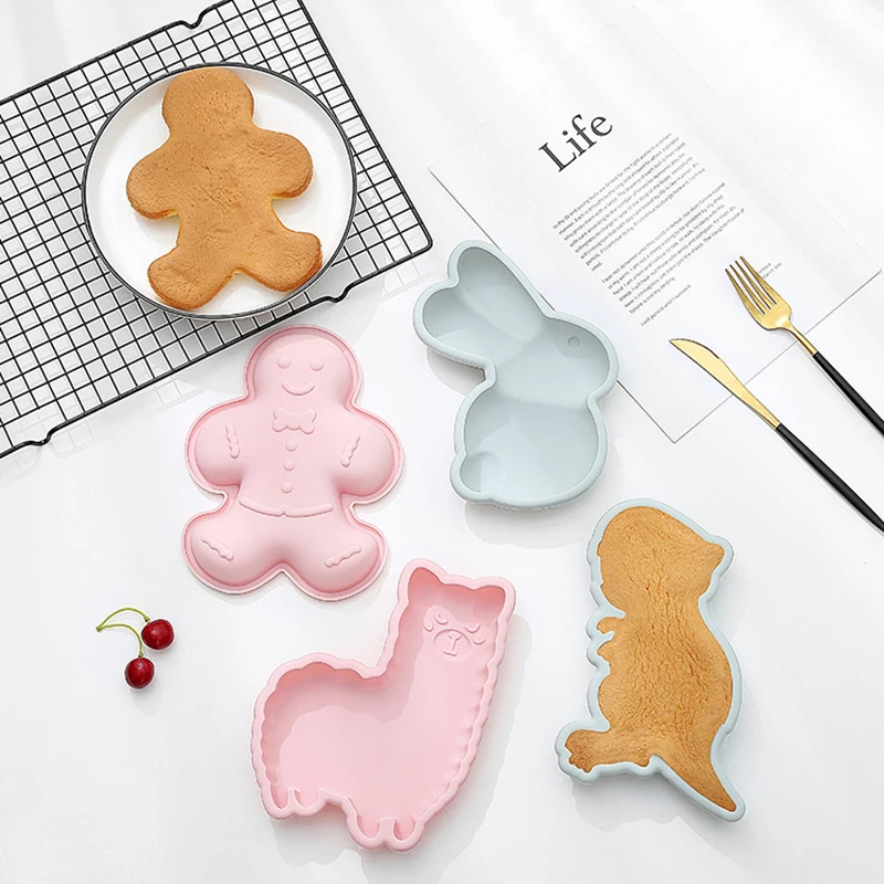 Форма для торта, 3D форма для милого кролика, альпаки, динозавра, пряника, человечка, форма для торта сделай сам, силиконовая форма, подходит для украшения дома