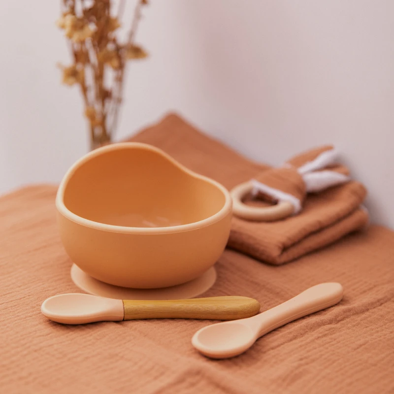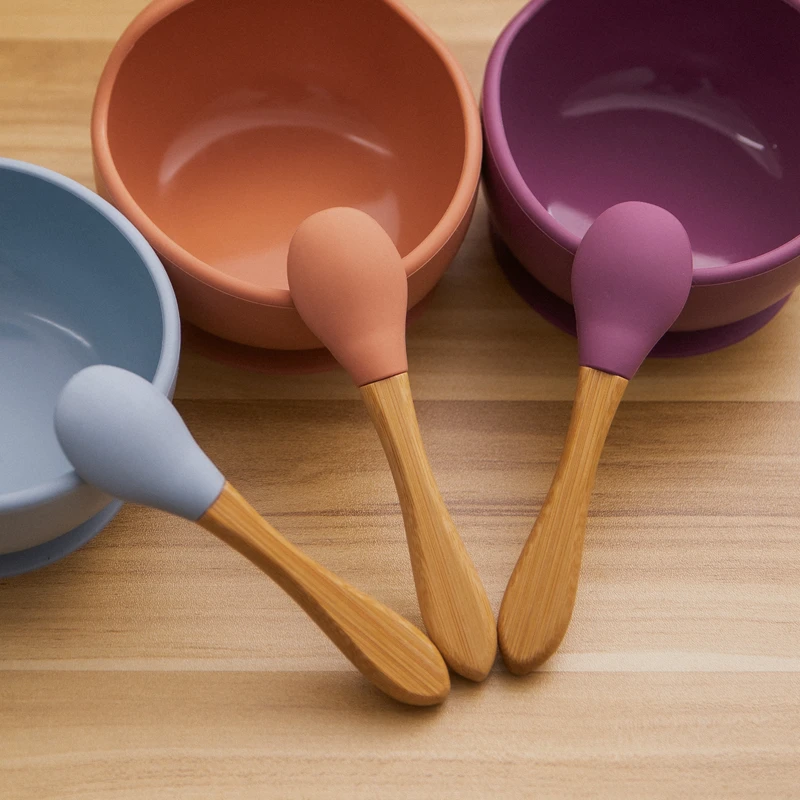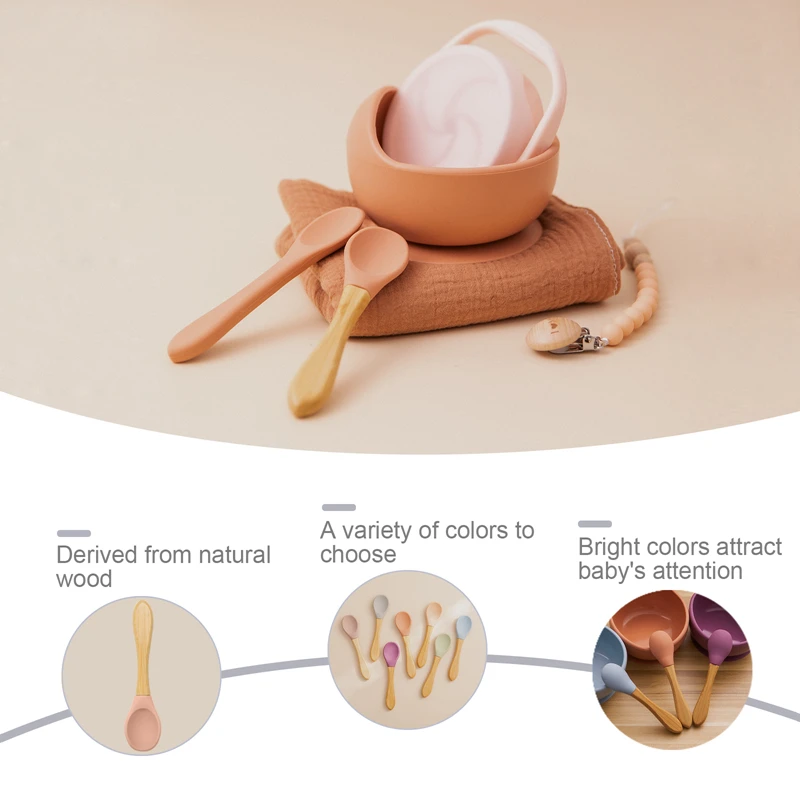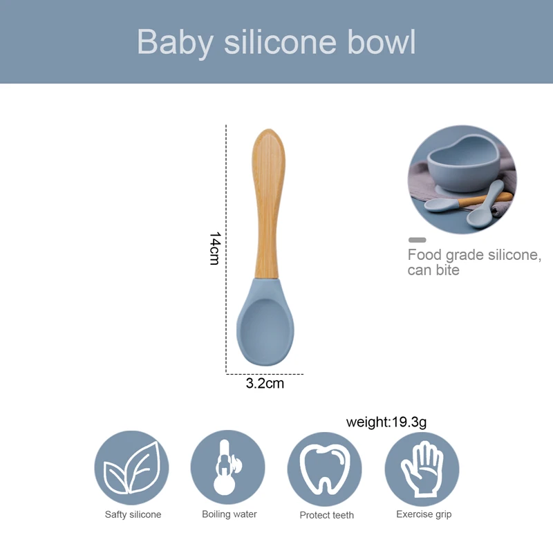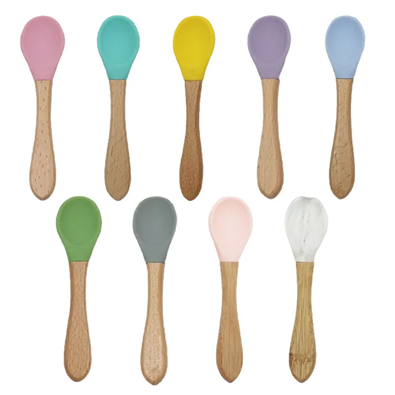 Упаковка:1 упаковка детских ложек деревянная ручка, силикон