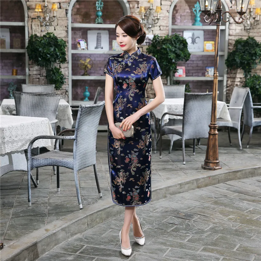 Платье женское китайское традиционное шелковое атласное, длинное пл...