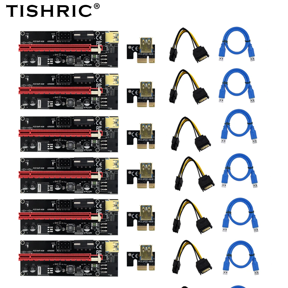 6 шт. TISHRIC PCIE PCI-E Riser 009S карта GPU PCI E X16 PCI Express 6Pin на SATA 1X 16X USB3.0 удлинитель светодиодный для майнинга ETH BTC