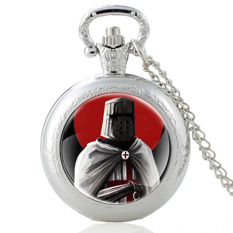Винтажные Рыцари Templar дизайнерские стеклянные кабошоны кварцевые карманные часы для мужчин и женщин кулон ожерелье цепочка часы подарки