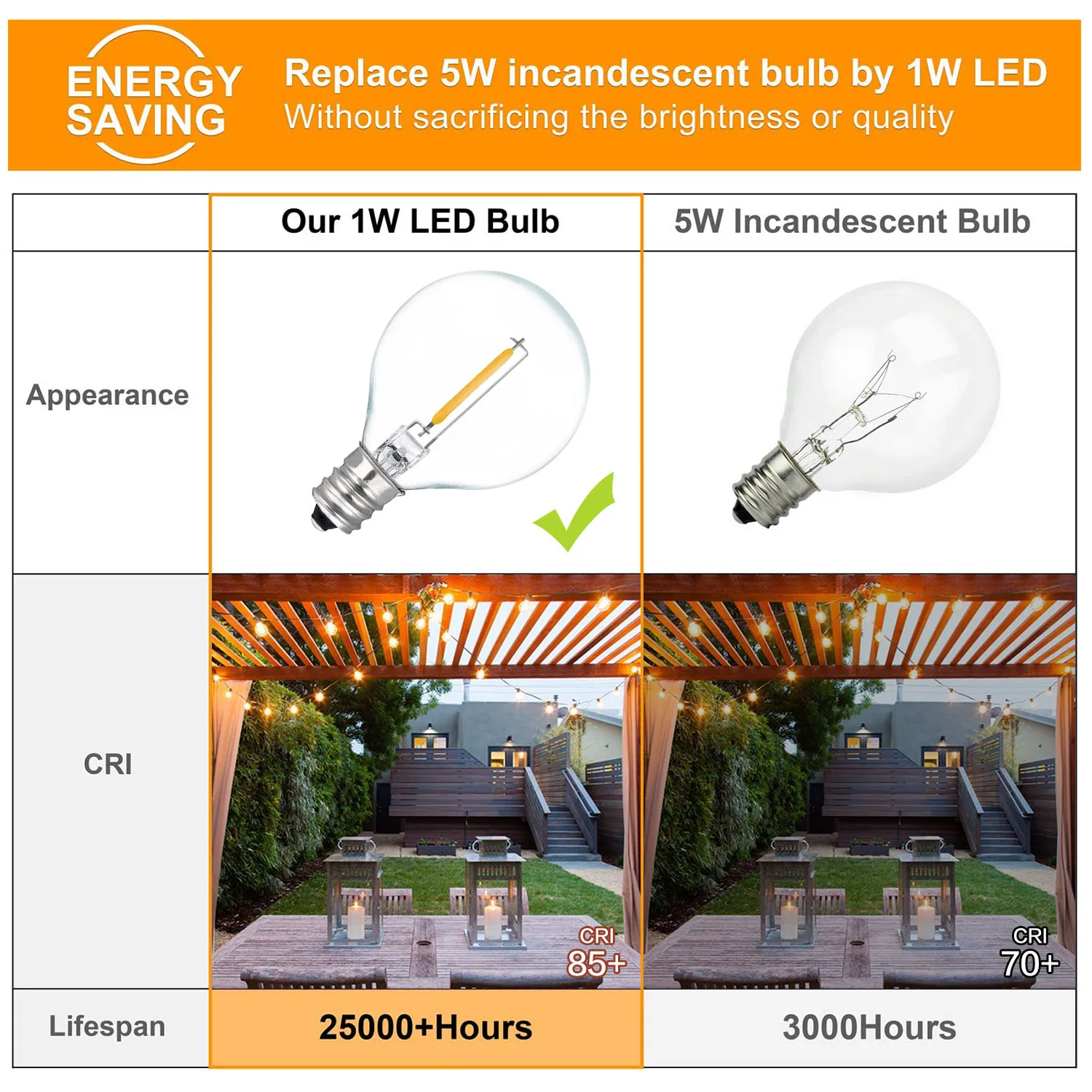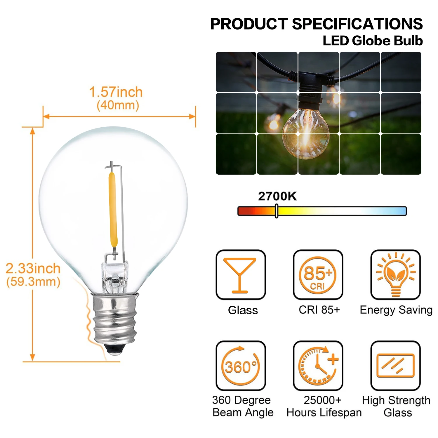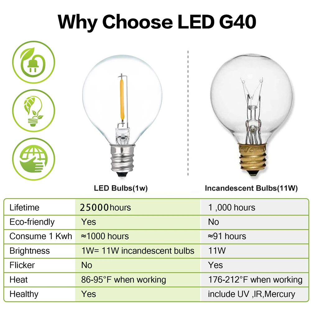 Сменная светодиодная гирлянда G40, лампа E12 220 В 110 В, теплый белый свет 2200K, сменные светодиодсветодиодный лампы накаливания G40 7 Вт, 25 шт.