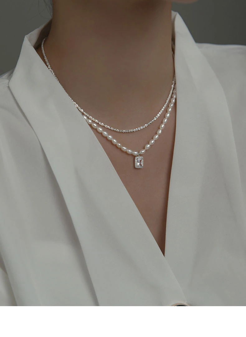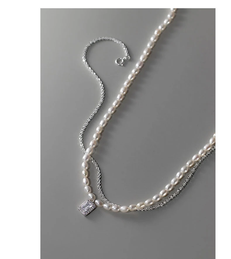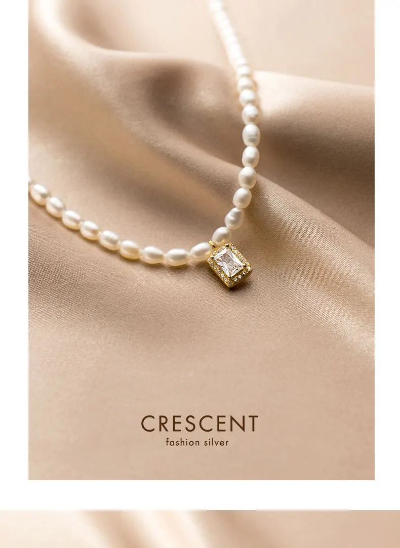 Короткое ожерелье-чокер MloveAccc, подвеска из серебра 100% пробы с жемчугом и квадратным цирконием, 925 пробы