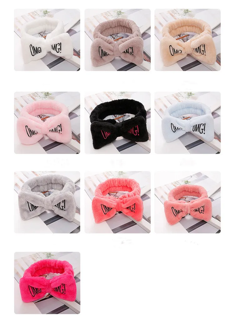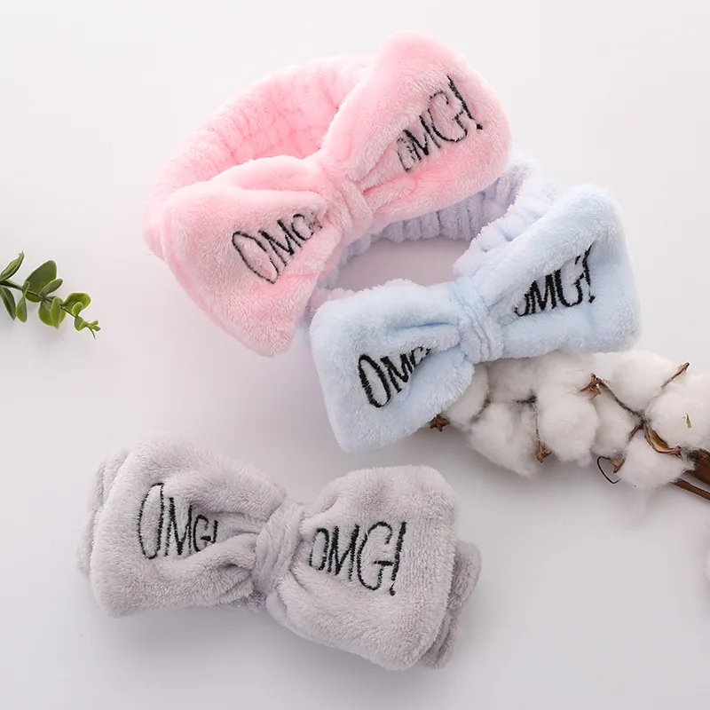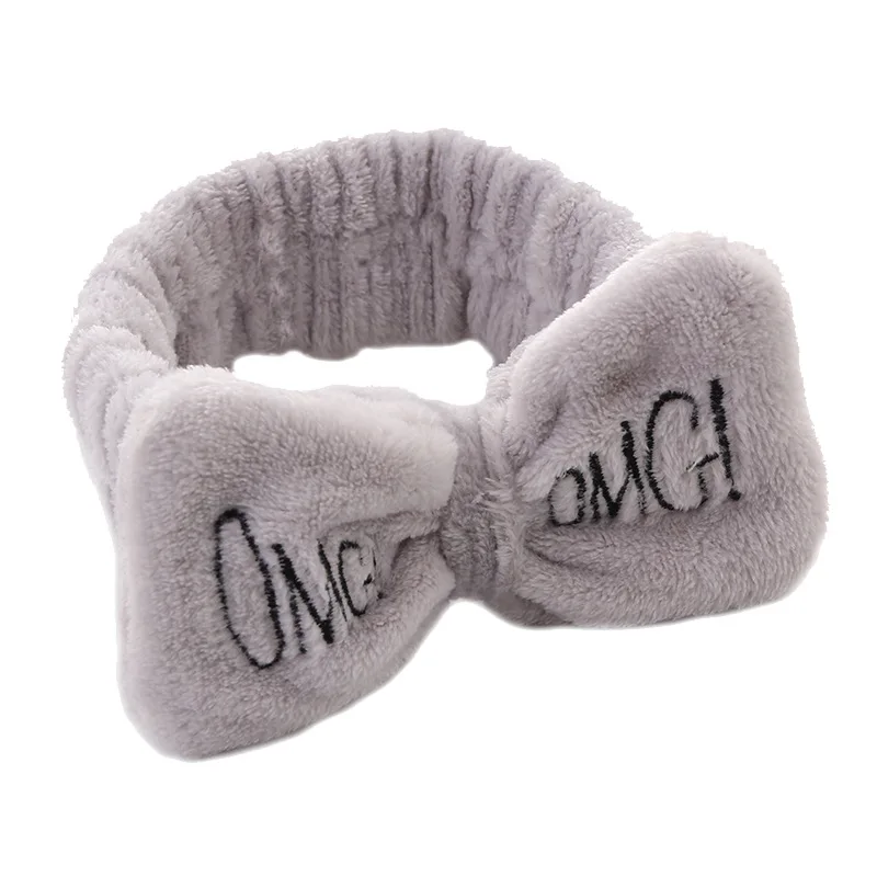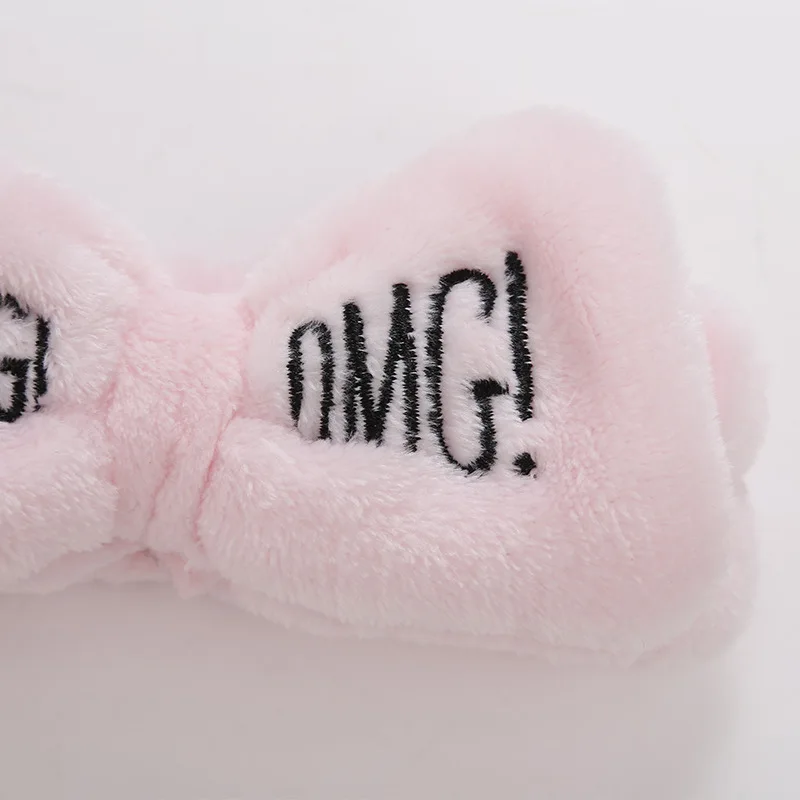 Повязка для волос с бантом Женская, бархатная эластичная заколка карамельных цветов с надписью OMG для мытья лица, купания, макияжа