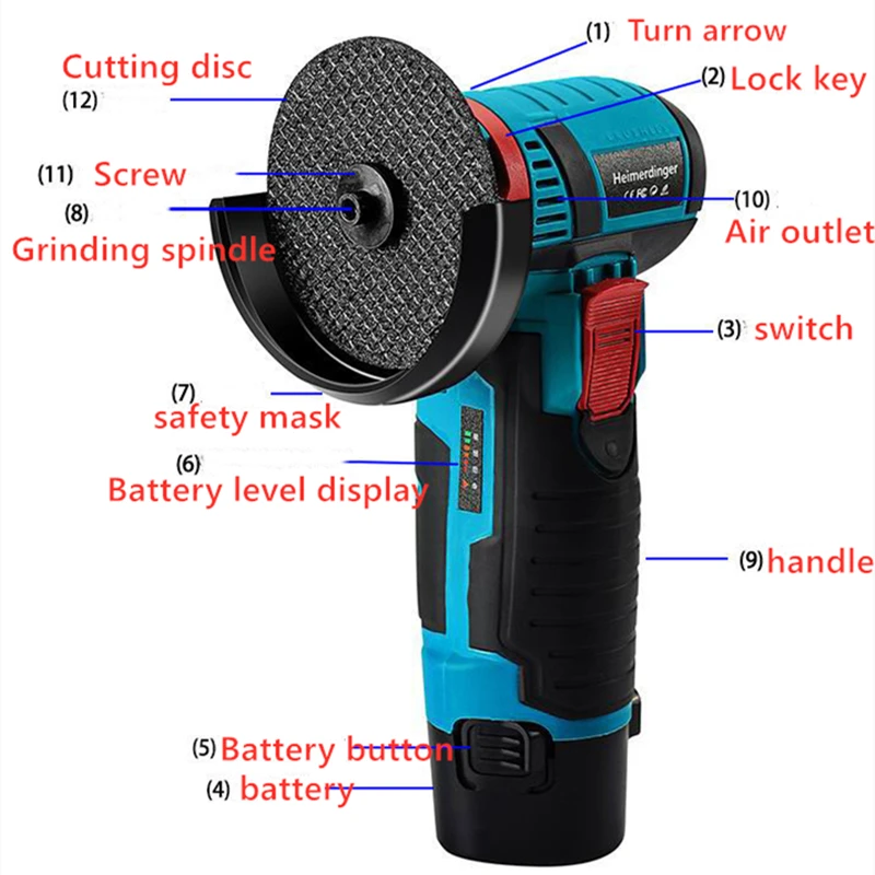 Посылка включает в себя:1x Бесщеточный Мини-шлифовальный станокАккумулятор 1 или 2 12 в 2000 мАч (Опционально)Зарядное устройство-1 шт.2/15 x алмазное режущее колесоСпецификация:Номинальное напряжение: 12 ВНоминальная скорость: 19500 об/минДиаметр диска: 80 ммДиаметр отверстия диска: 10 ммВходная мощность: 300 ВтШлифовальный шпиндель резьба: M5Рекомендуемая температура окружающей среды: 0- + 35 ℃Допустимая температура окружающей среды: -20- + 50 ℃