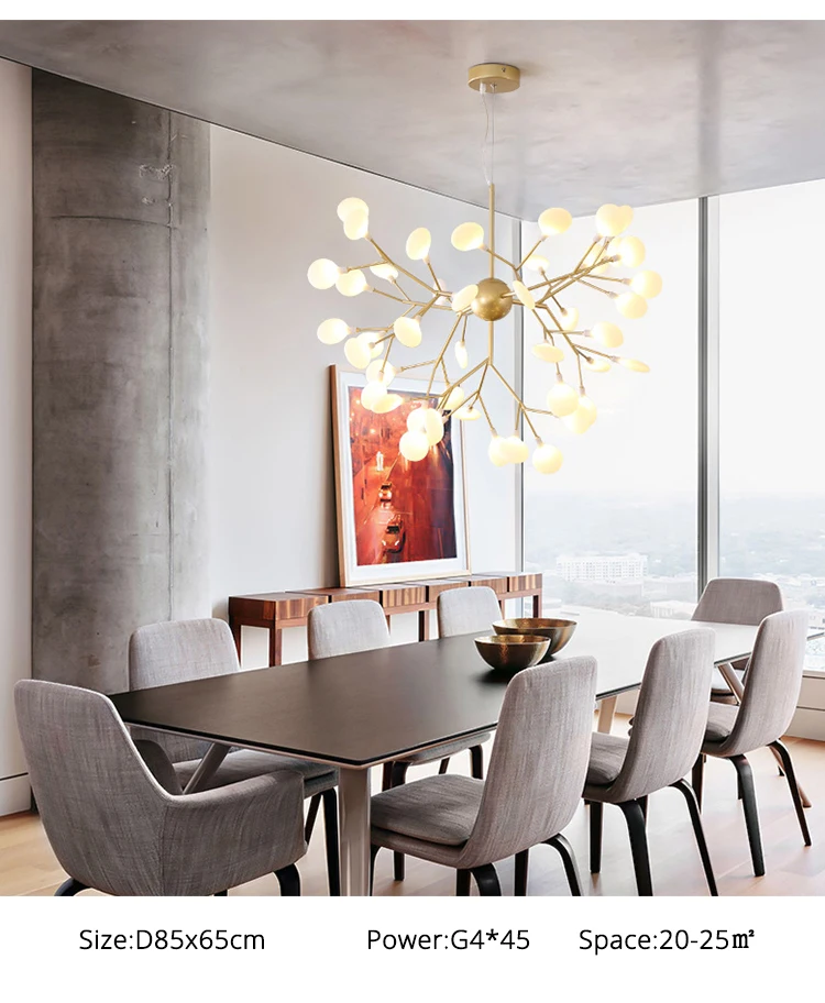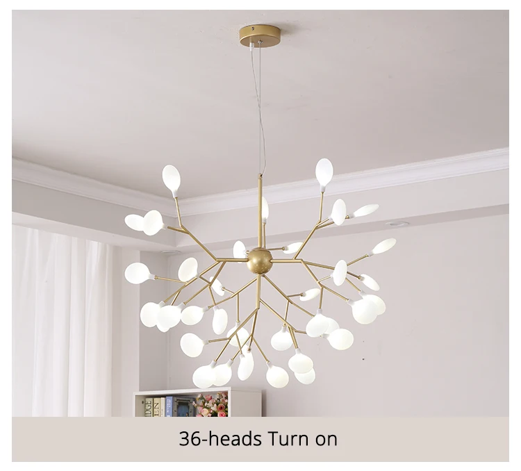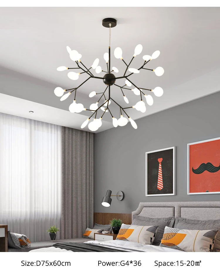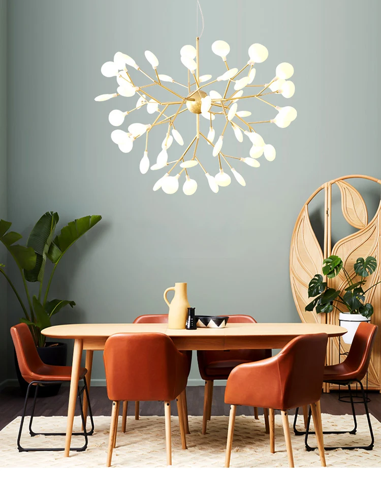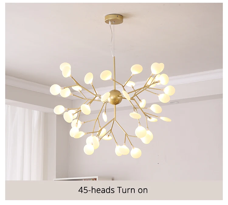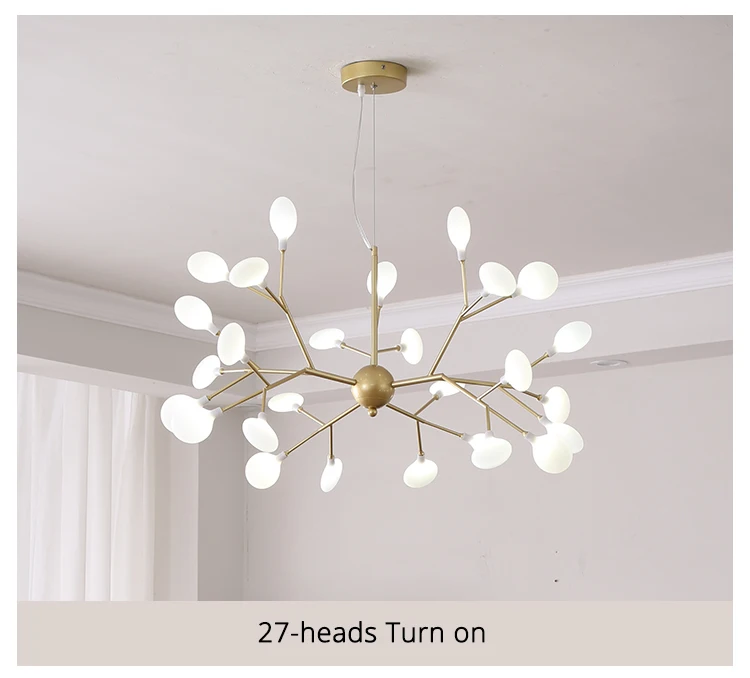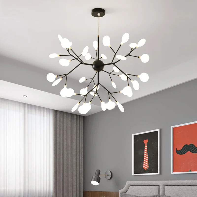 Светодиодная люстра Firefly для гостиной, лампа для спальни, комнатные осветительные приборы золотого и черного цвета