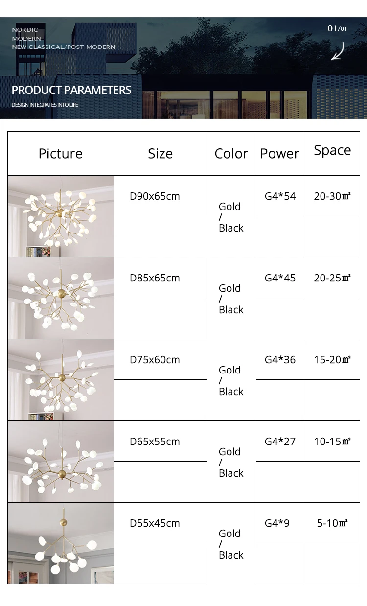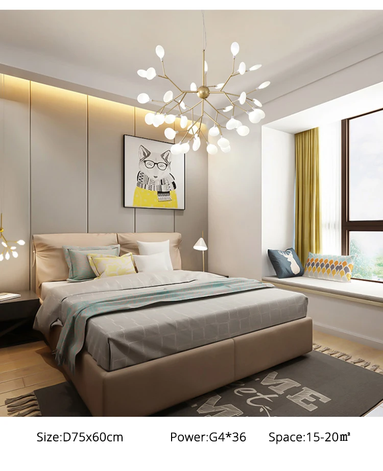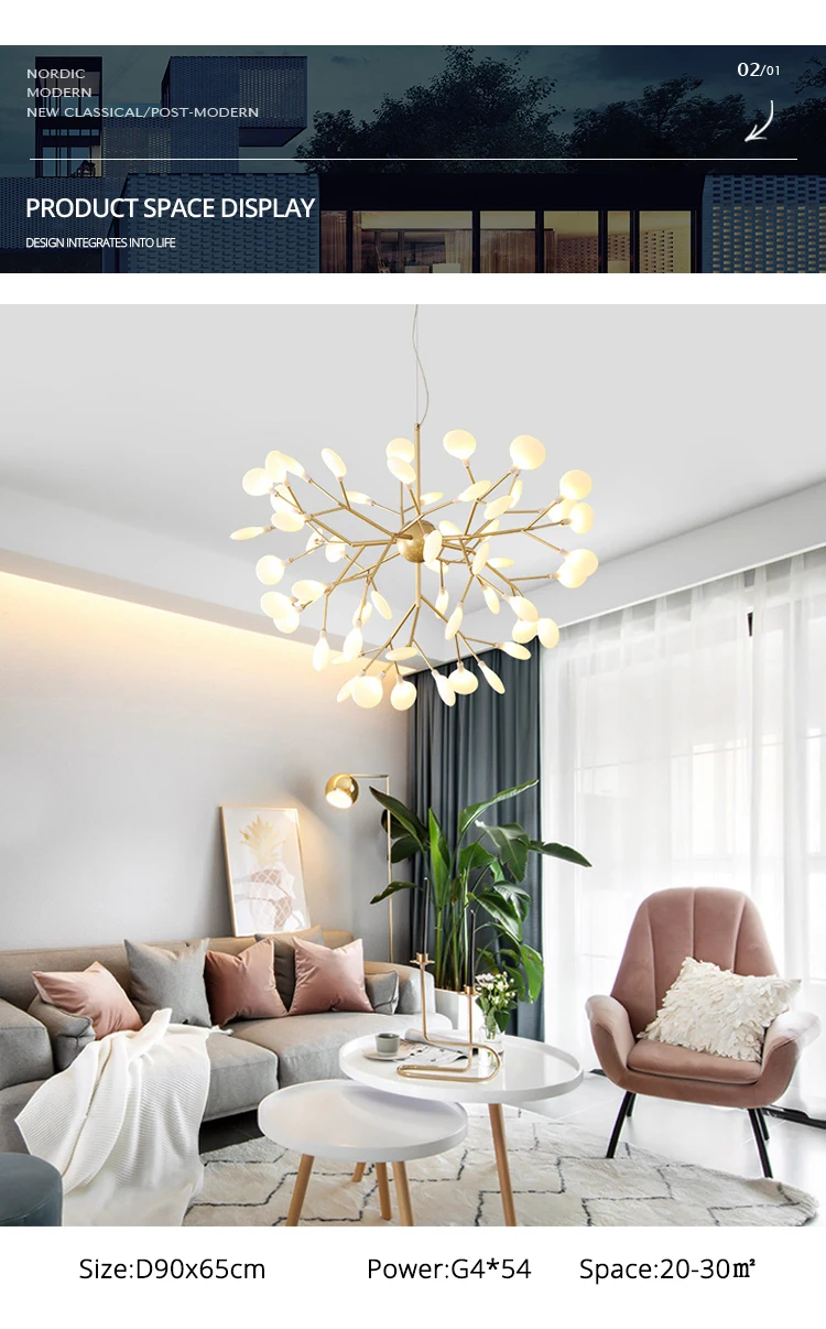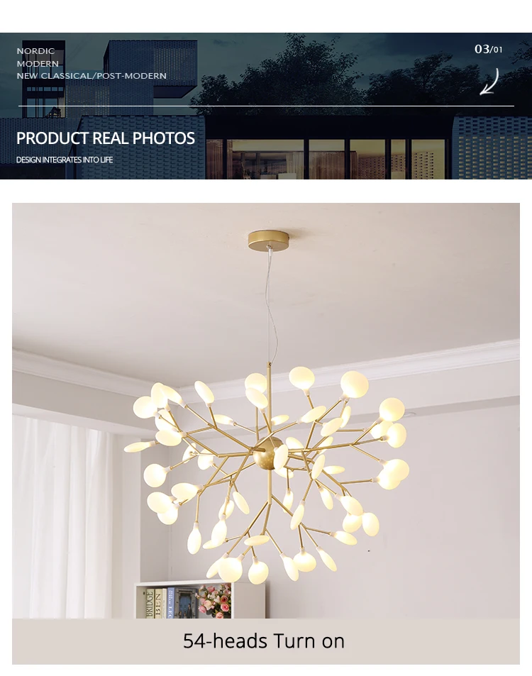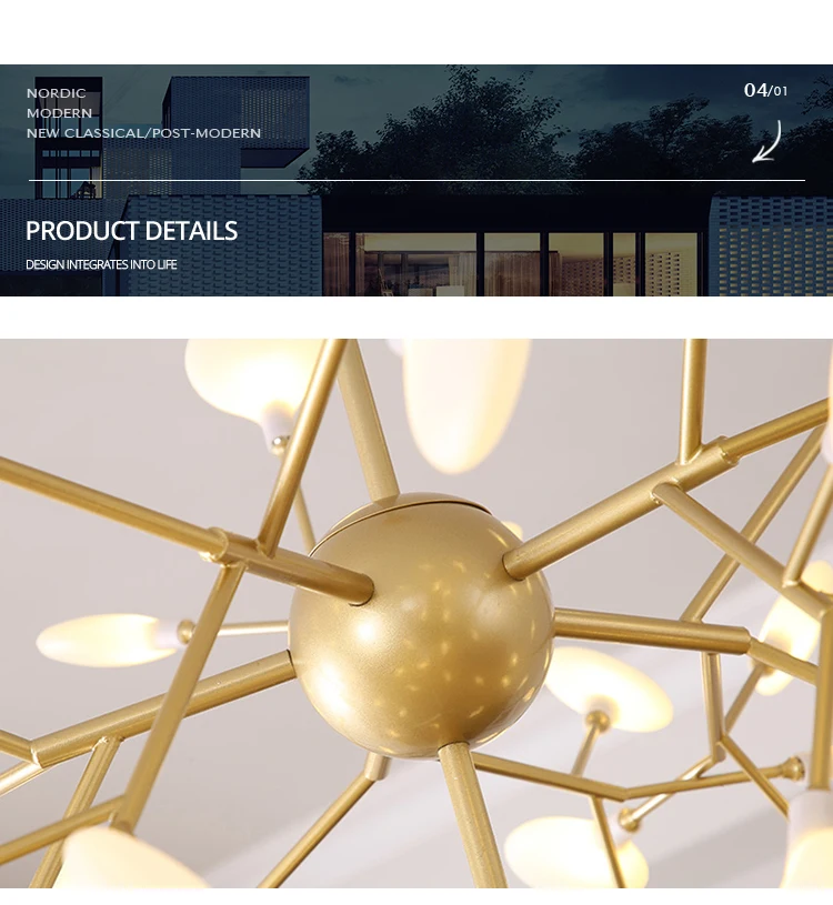 Светодиодная люстра Firefly для гостиной, лампа для спальни, комнатные осветительные приборы золотого и черного цвета
