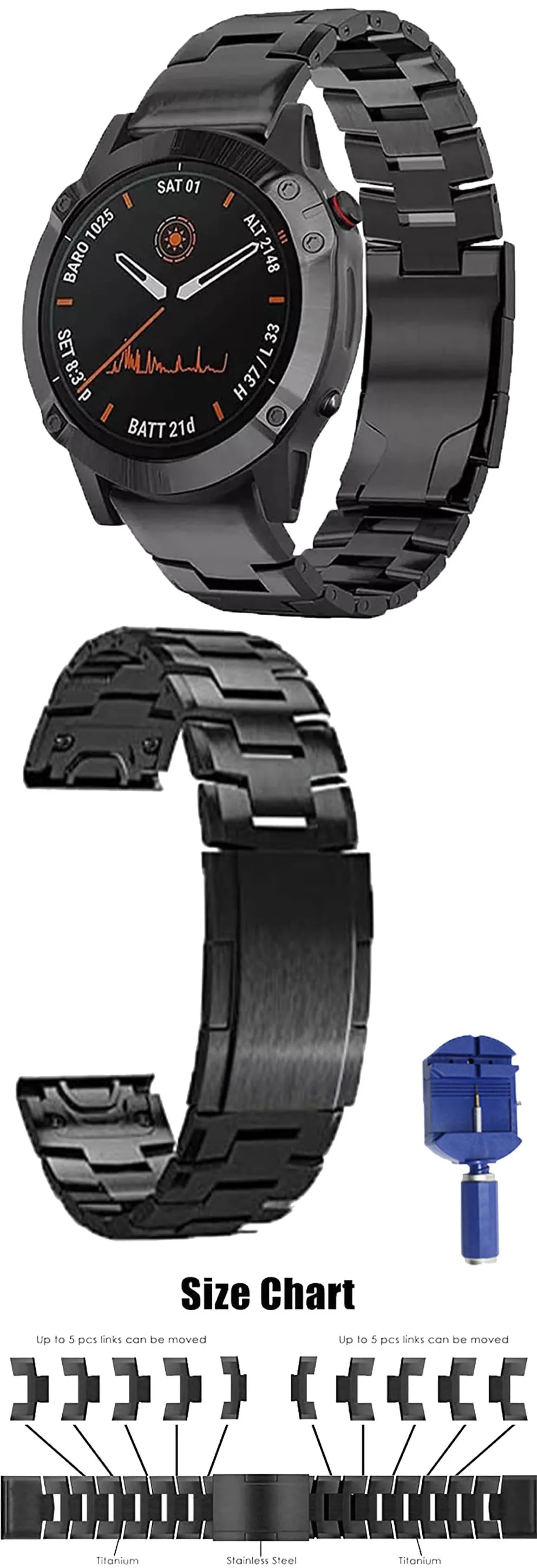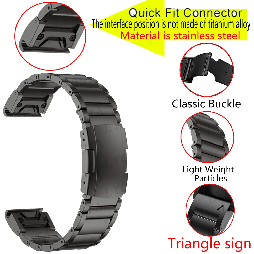 22/26 мм Титан сплава нержавеющей стали ремешок для наручных часов для Garmin Fenix6X 5X 5Plus 3HR, отлично подходит для установки металлические часы ремешки