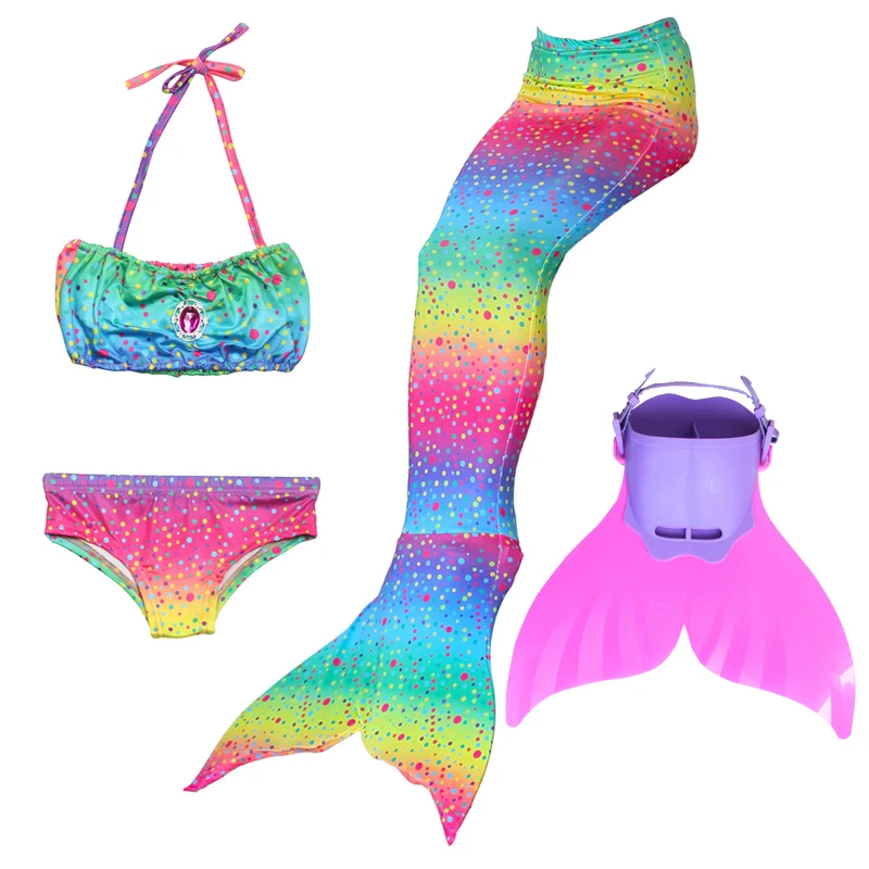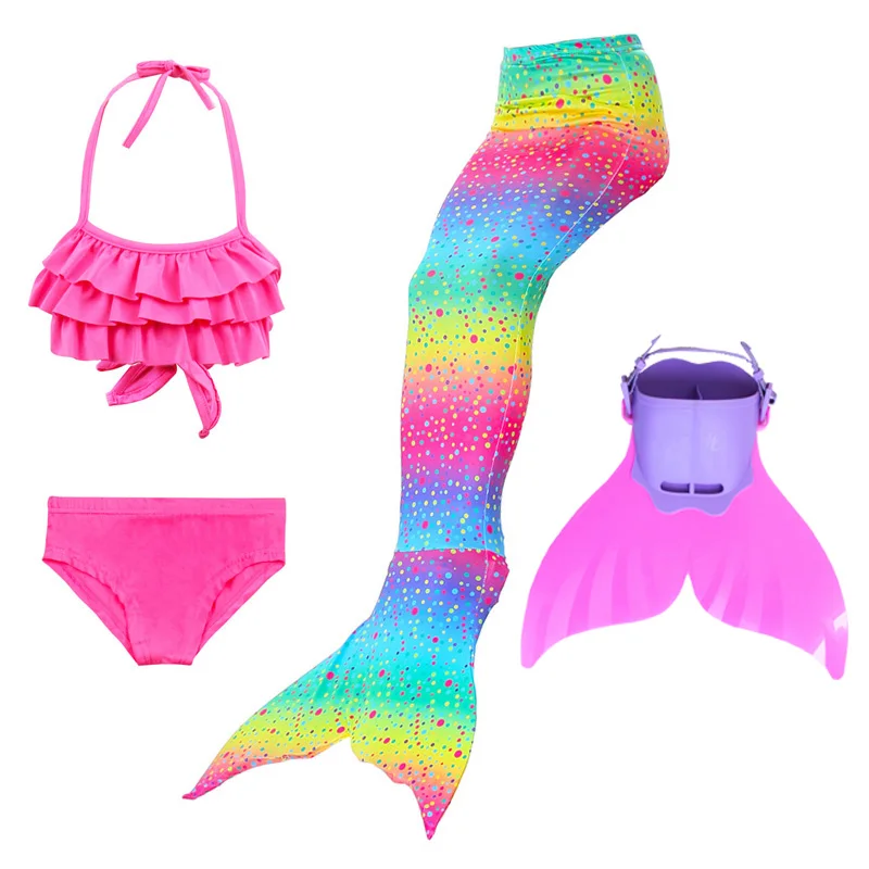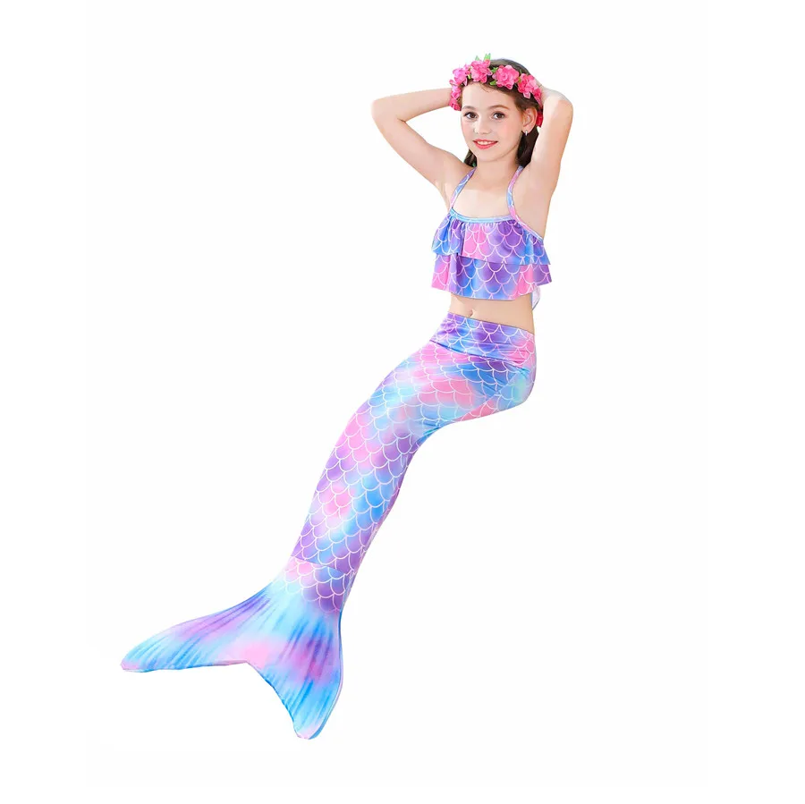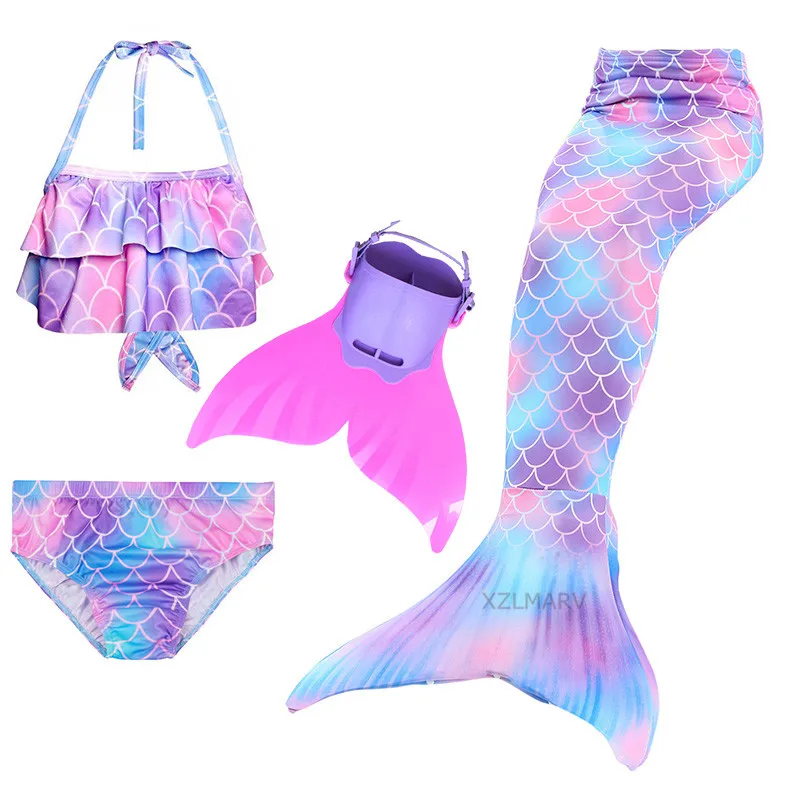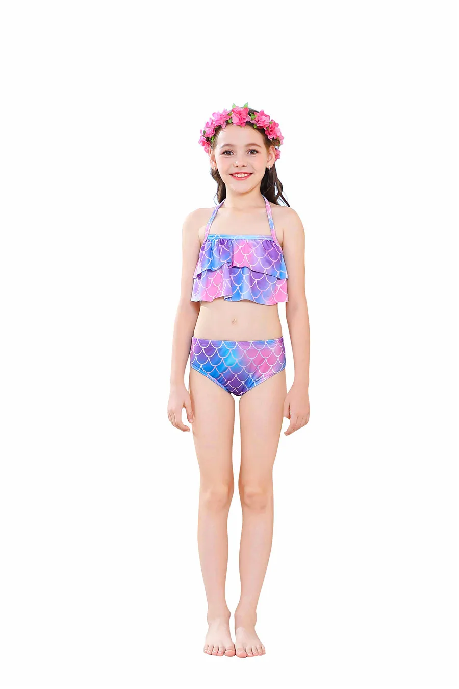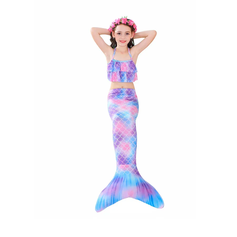 Купальник-бикини с хвостом Русалочки для девочек, детский купальный костюм с плавниками и моноластами для Хэллоуина