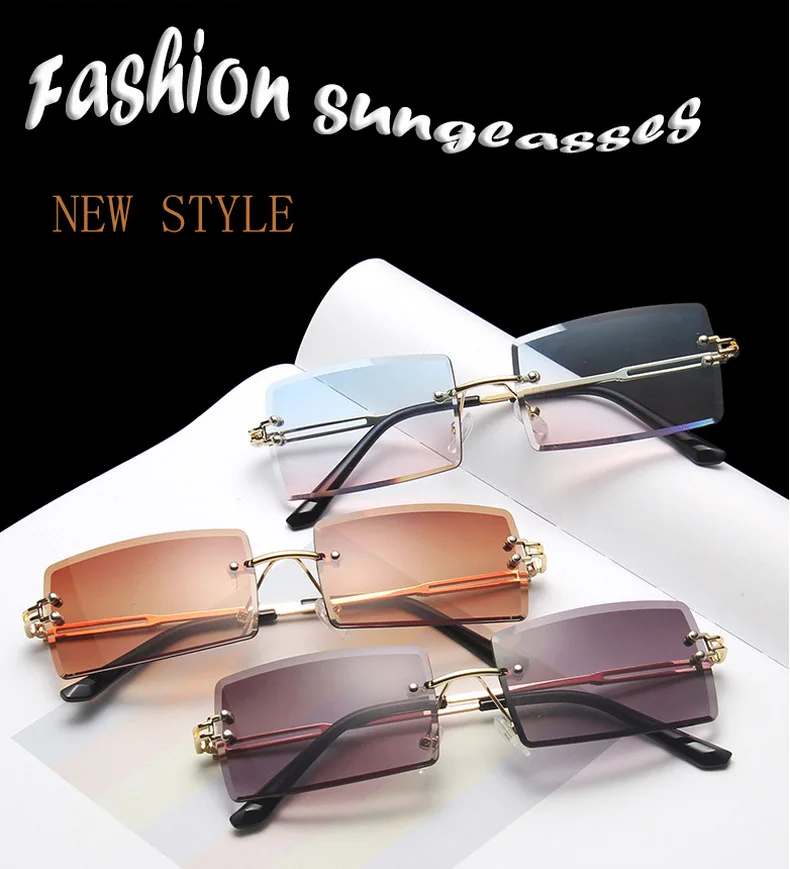 Новинка 2021, солнцезащитные очки без оправы, модные солнцезащитные...