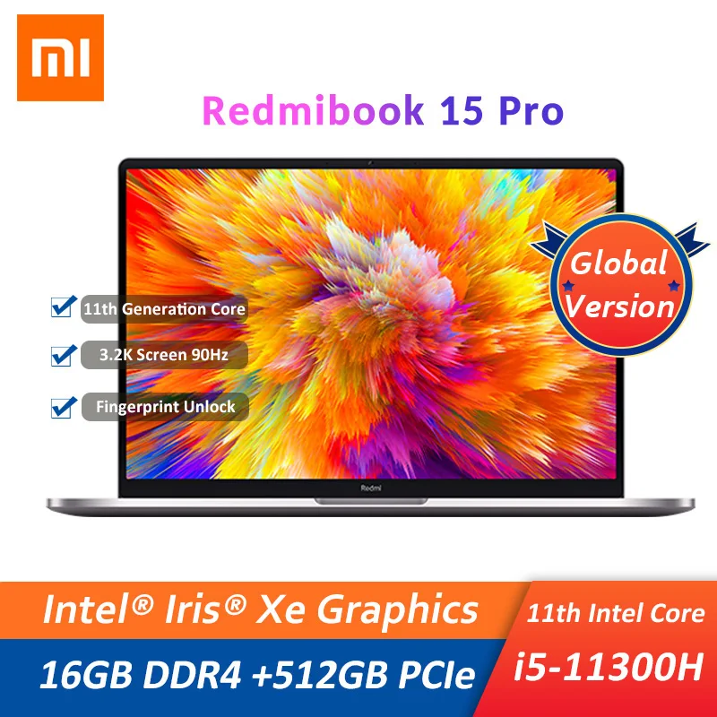 Ноутбук Xiaomi Mi RedmiBook Pro 15, 15,6 "Ноутбук i5-11300H, 16 ГБ DDR4 512 ГБ Intel Iris Xe Graphics 3,2 K FHD, ПК, 90 Гц, Win10