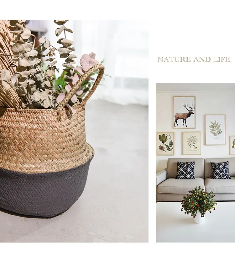 Корзина для хранения растений из морских водорослей, корзина для игрушек, домашний декор, корзина для белья, органайзер, бамбуковая корзина для цветов, корзина