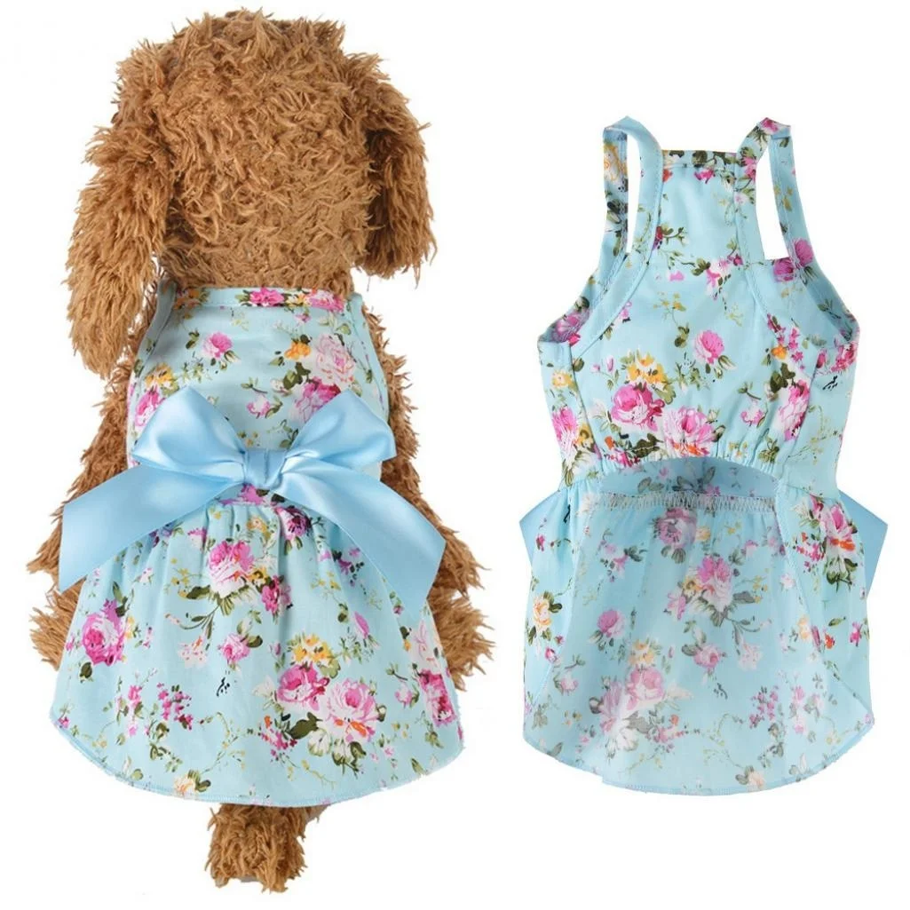 Милая летняя одежда для собак с цветочным принтом и бантом