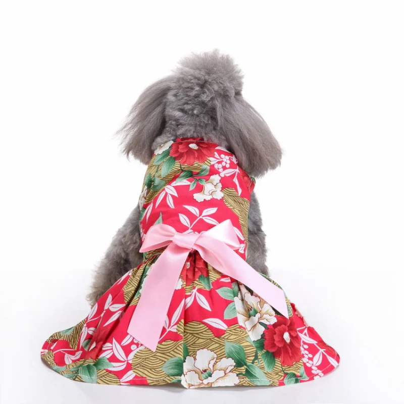Весеннее платье для собакикошки, Симпатичный хлопковый костюм с цве...