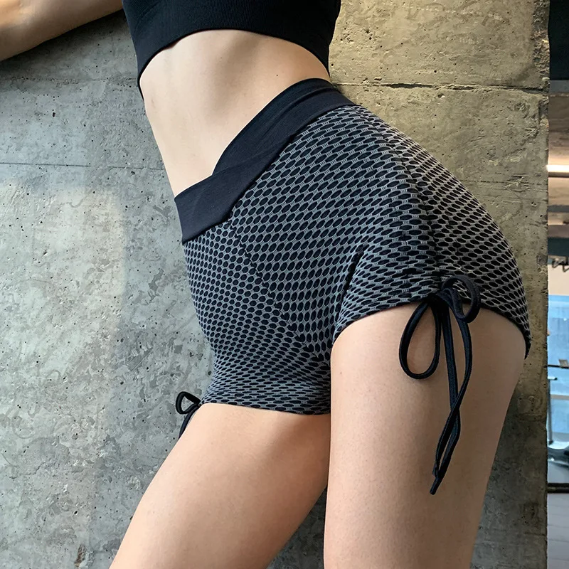 Спортивные колготки для подтяжки бедер фитнеса с высокой талией эластичная веревка облегающие шорты для бега упражнений йоги леггинсы для фитнеса женские спортивные брюки