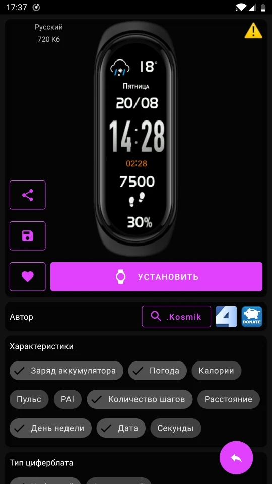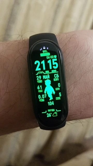 Доставка на Новую почту за 15 дней. Ранее подобными браслетами не владел, поэтому сравнивать не с чем. Поигрался с картинками на экран, в том числе и из сторонних приложений, в итоге остановился на часах, пульсе и уровне заряда. Остальное считаю излишеством, визуально перегружающим и так относительно небольшой дисплей. Заряд со 100% до 24% упал за 6 дней. Сейчас для экономии батареи поотключал разные режимы (контроль сна и т.п.), посмотрю сколько теперь проживет. Пульс считает вроде как правильно. Поездку в транспорте - как шаги))). Попробую «обучить» с помощью меток поведения в приложении. А так... Штука прикольная, своих денег стоит, излишним функционалом не перегружена. Для спортсменов-профессионалов есть другие девайсы, а для людей, старающихся следить за своим здоровьем – в самый раз.