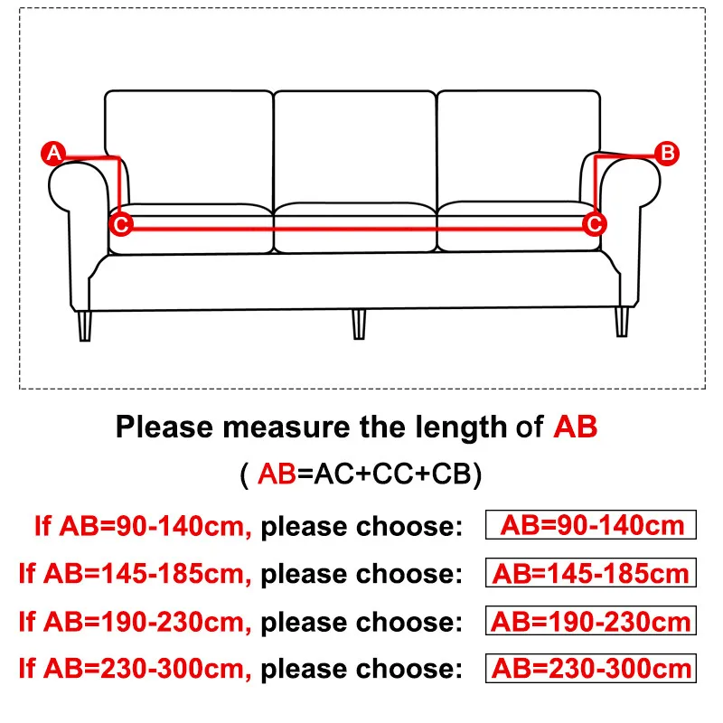 Пожалуйста, тщательно измерьте размер вашего дивана. Также учитывайте подлокотники. Если вы не принимаете подлокотники во внимание, чехол для дивана может не поместиться на вашем диване.