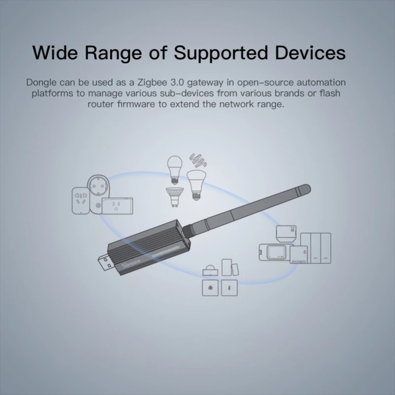 Донгл плюс имеет широкий спектр поддерживаемых устройств, таких какBASICZBR3,S31 Lite zb,SNZB01,SNZB02,SNZB03,SNZB04,ZBMINI,S26R2ZB,