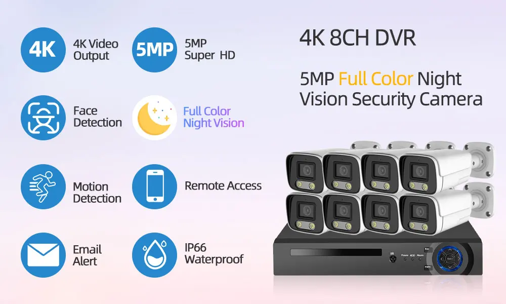 5-мегапиксельная цветная система ночного видения 8CH H.265 + P2P 4K DVR наружная Водонепроницаемая домашняя камера видеонаблюдения AHD система безопасности комплект VMS
