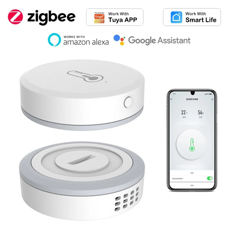 Умный датчик температуры и влажности ZigBee, дистанционное управление через приложение Tuya Smart Life, работает на батарейках, работает с ALexa Google Home