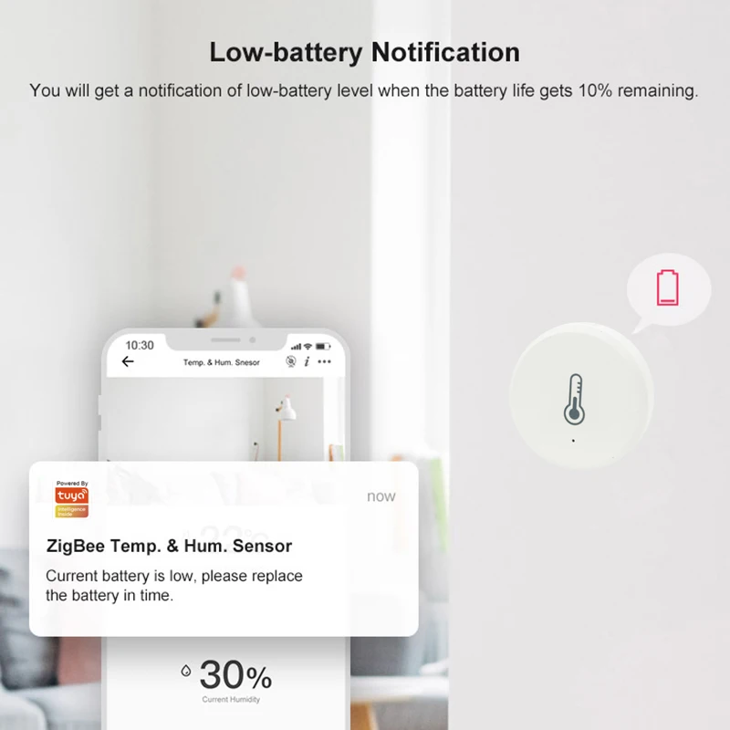 Разработан с функцией напоминания о низком напряжении в приложении для источника питания вашего датчика в реальном времени.