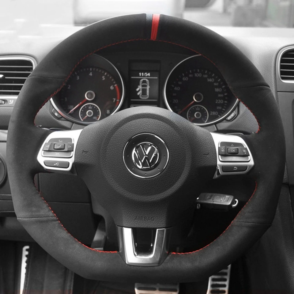Ручной работы из натуральной кожи и замши чехол рулевого колеса автомобиля для Volkswagen Golf 6 GTI MK6 Polo GTI Scirocco R Passat CC