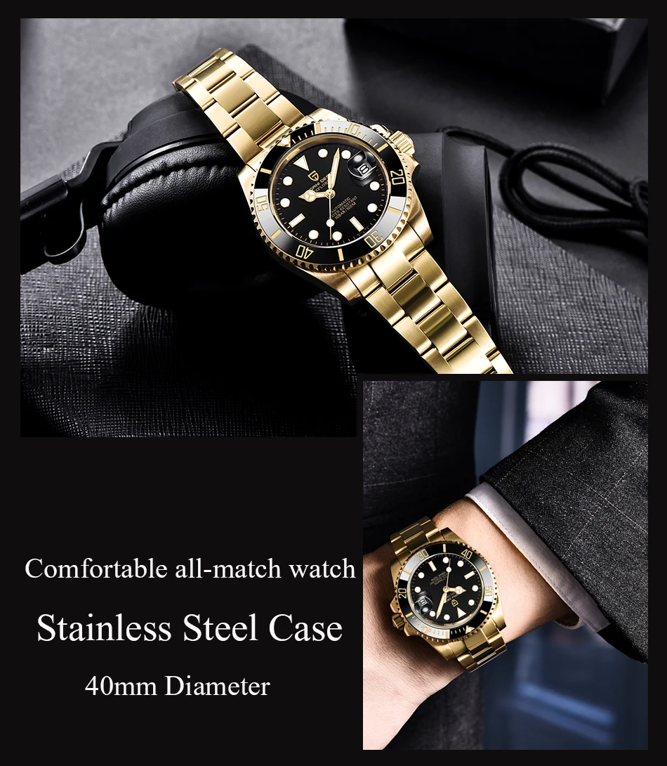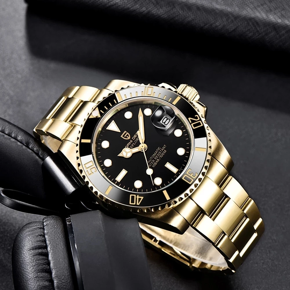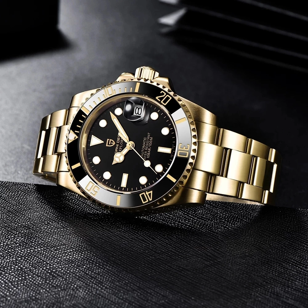 Часы наручные PAGANI Мужские механические, деловые водонепроницаемые из нержавеющей стали с сапфировым золотистым корпусом, 40 мм