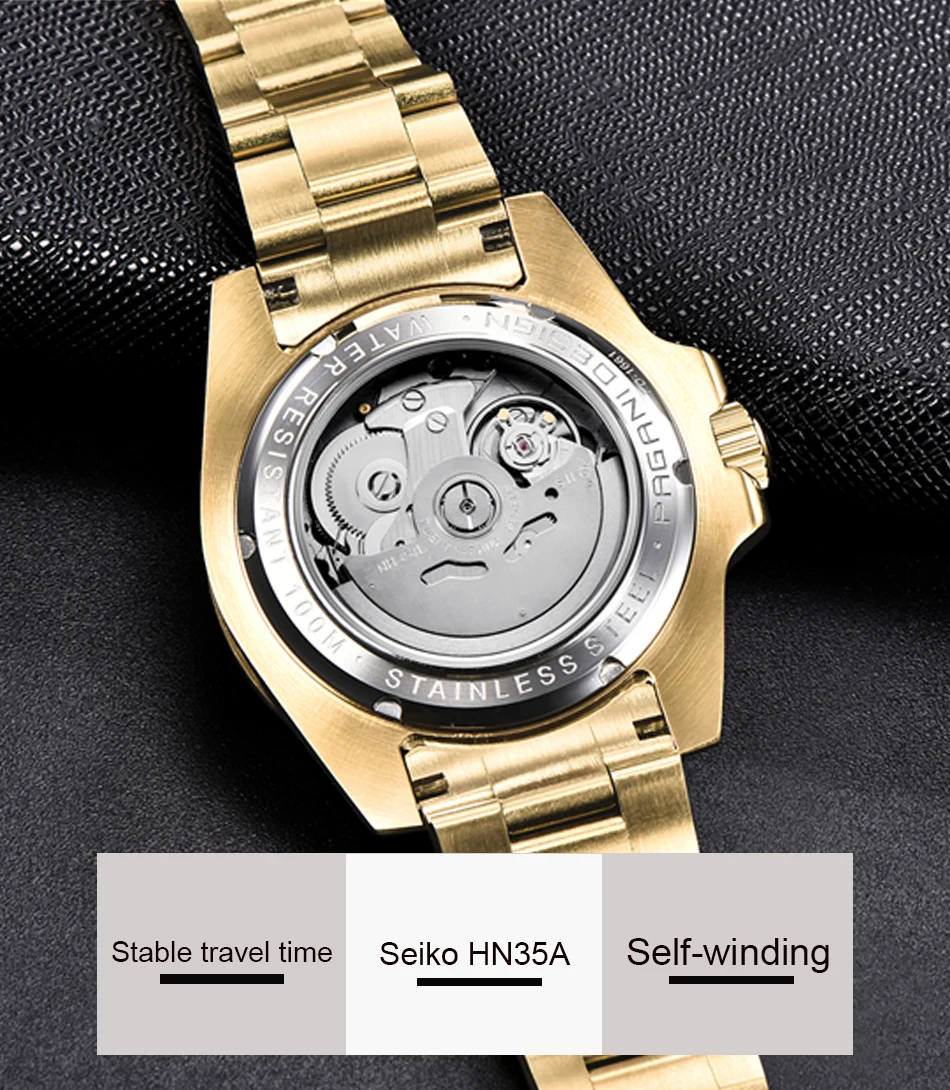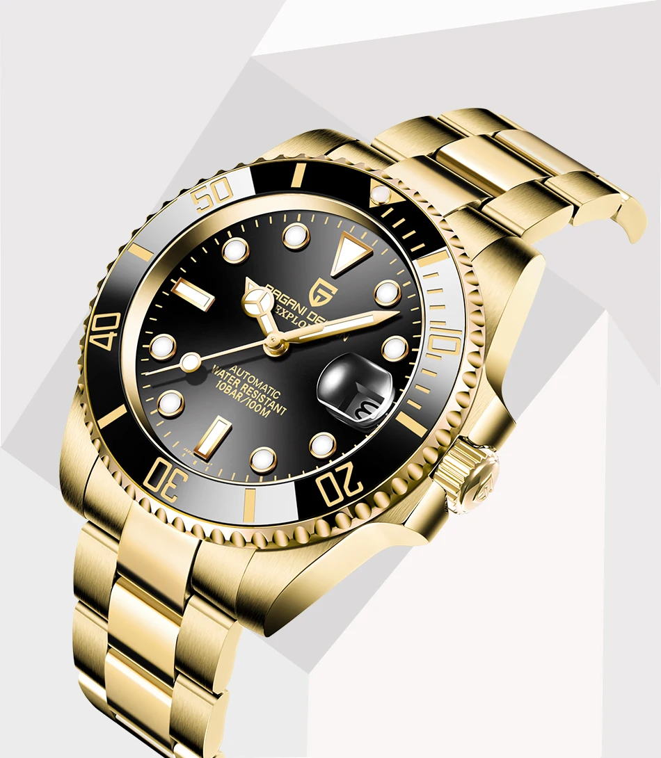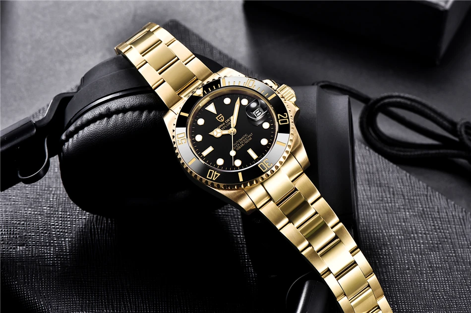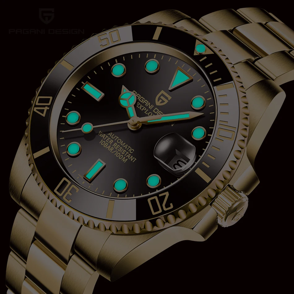 Часы наручные PAGANI Мужские механические, деловые водонепроницаемые из нержавеющей стали с сапфировым золотистым корпусом, 40 мм