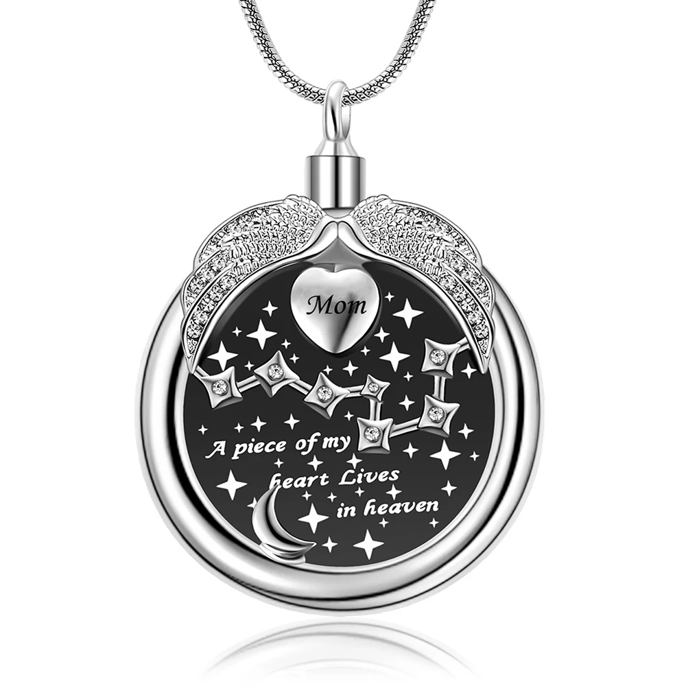 Высокое качество звезды и луна кулон с мемориальной урной ожерелье частичка моего сердца живет в небо с угловыми крыльями кремации ювелирные изделия