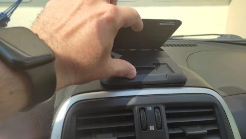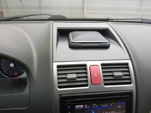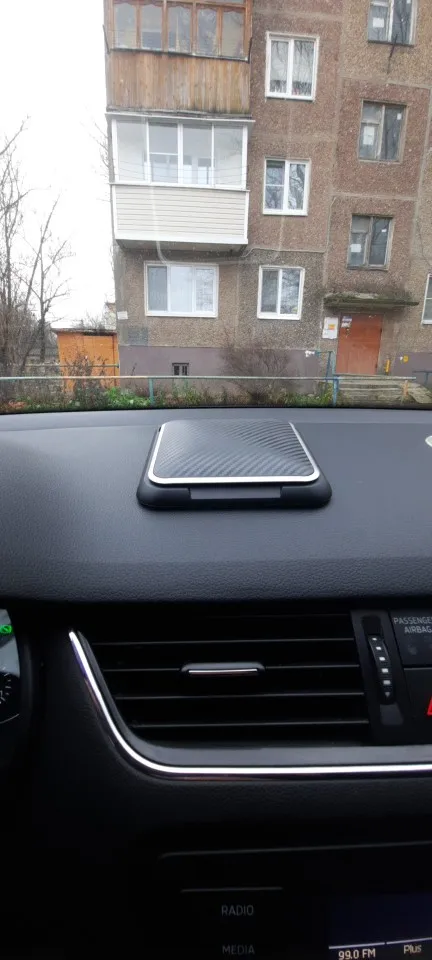отлично держит телефон приклеил к выпукой части над приборной панелью ровно не прилегает но не болтается впереди на двухстороннем скоче закрепил видеорегистратор gopro вместо видеорегистратора телефон показывает все камеры гаишные знаки скорости получилось нормально. вторую поставлю в фольксваген там будет только телефон а Акенори видеорегичтротор там сверху на стекле навсегда приклеен оба автомобиля будут норм.