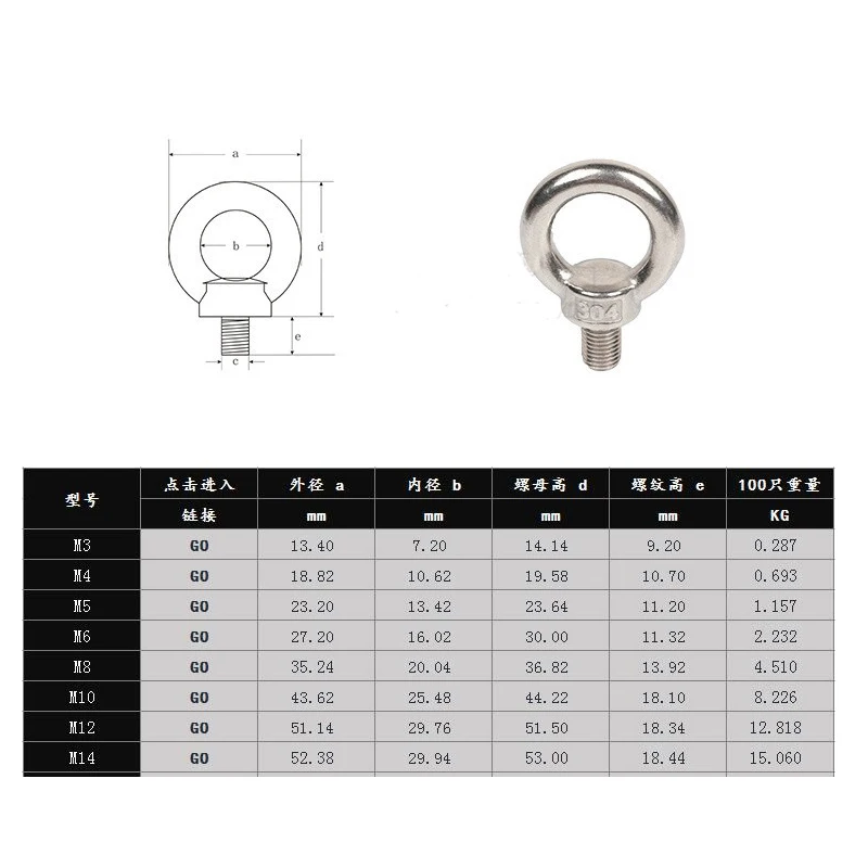 304 нержавеющая сталь, плечевые подъемные гайкивинтовое кольцо eyeb...