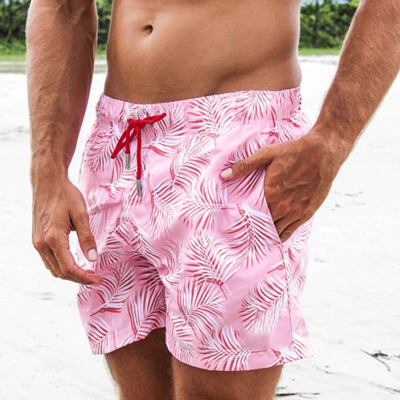Мужские пляжные шорты с принтом в виде розовых листьев, купальники с поясом, мужские спортивные шорты для бега, штаны для плавания размера плюс 3XL