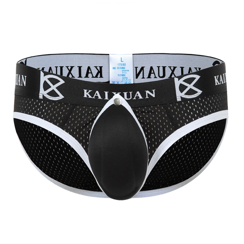 Мужские трусы брифы с поролоновой чашечкой, черные брифы с увеличен...