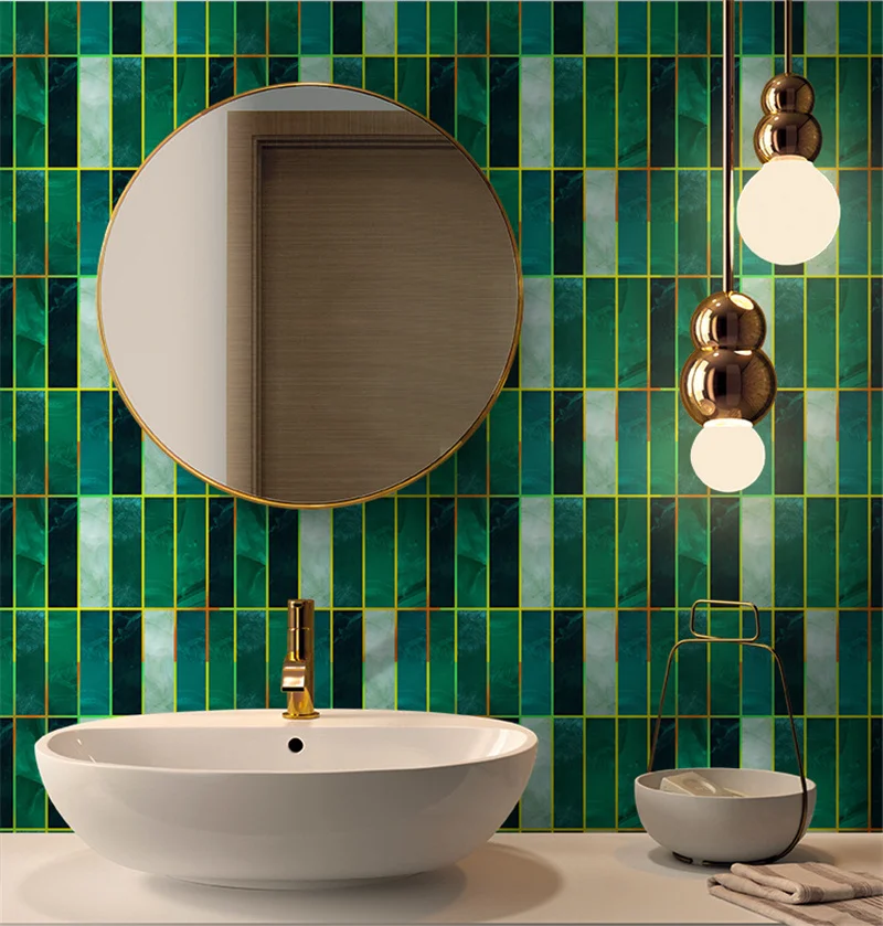 Новый продукт горячее тиснение изумрудная Елочная плитка ванная ПВХ водостойкая самоклеящаяся Настенная Наклейка
