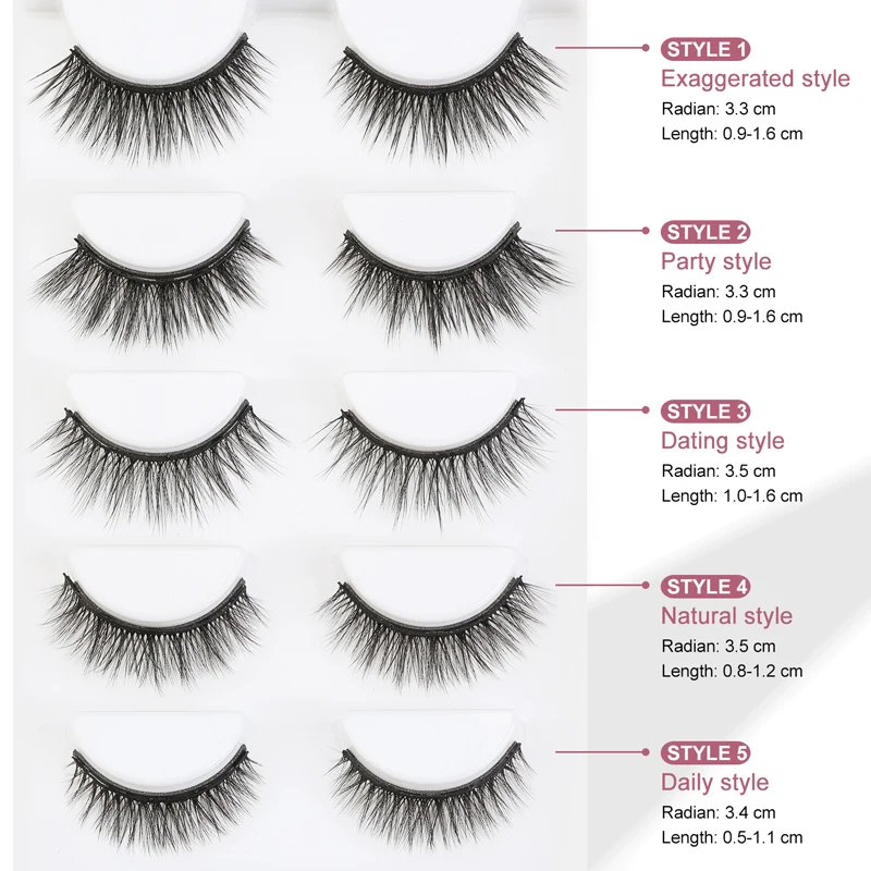 5 парнабор 3D норки Магнитная ресницы подводка для глаз набор пинцетов из натурального плотного прочного накладные, длинные Комплект ресниц для наращивания ресниц, пинцет косметика