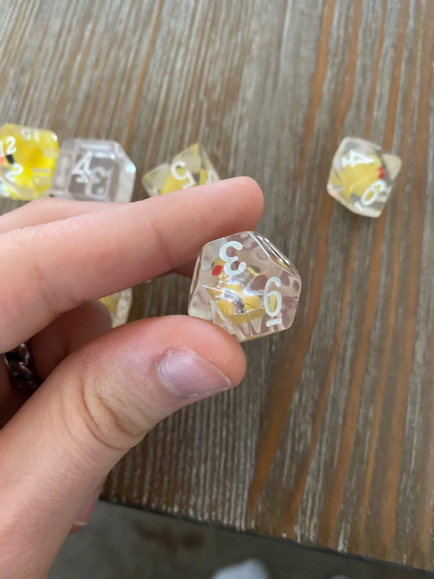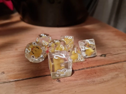 Very cute dices, arrived exactly when estimated! They don't show any type of exterior damaged or defective parts. Enjoy your Ducky cute Dices