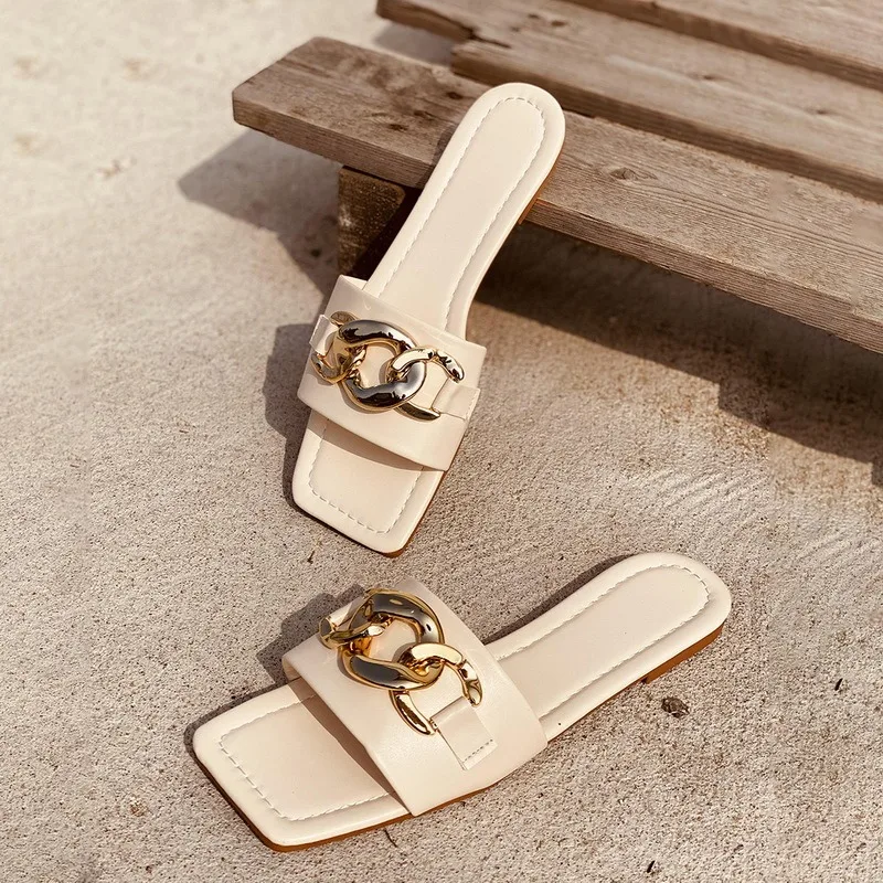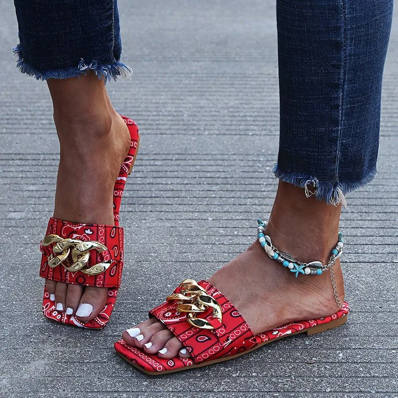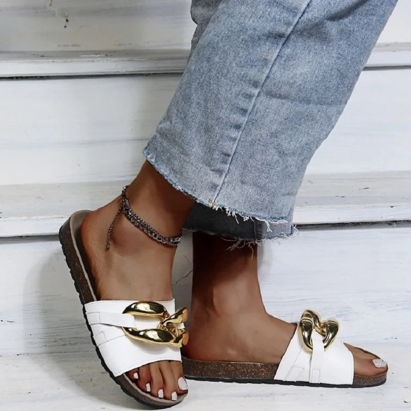 Шлепанцы женскиемужскиеженские в ретро стиле, сандалии с открытым круглым носком и большой цепочкой, сланцы, летние шлепанцы, большие размеры
