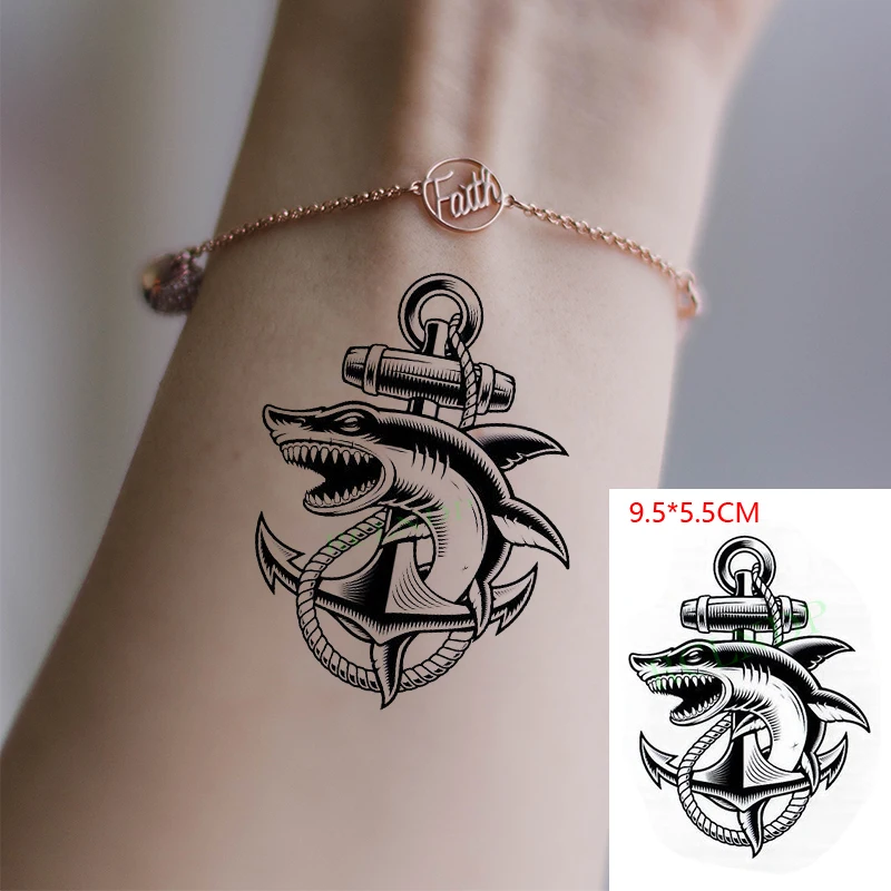 Водостойкая временная татуировка наклейка акула большая рыба, якорь морское животное боди-арт флеш-тату поддельные татуировки для женщин мужчин